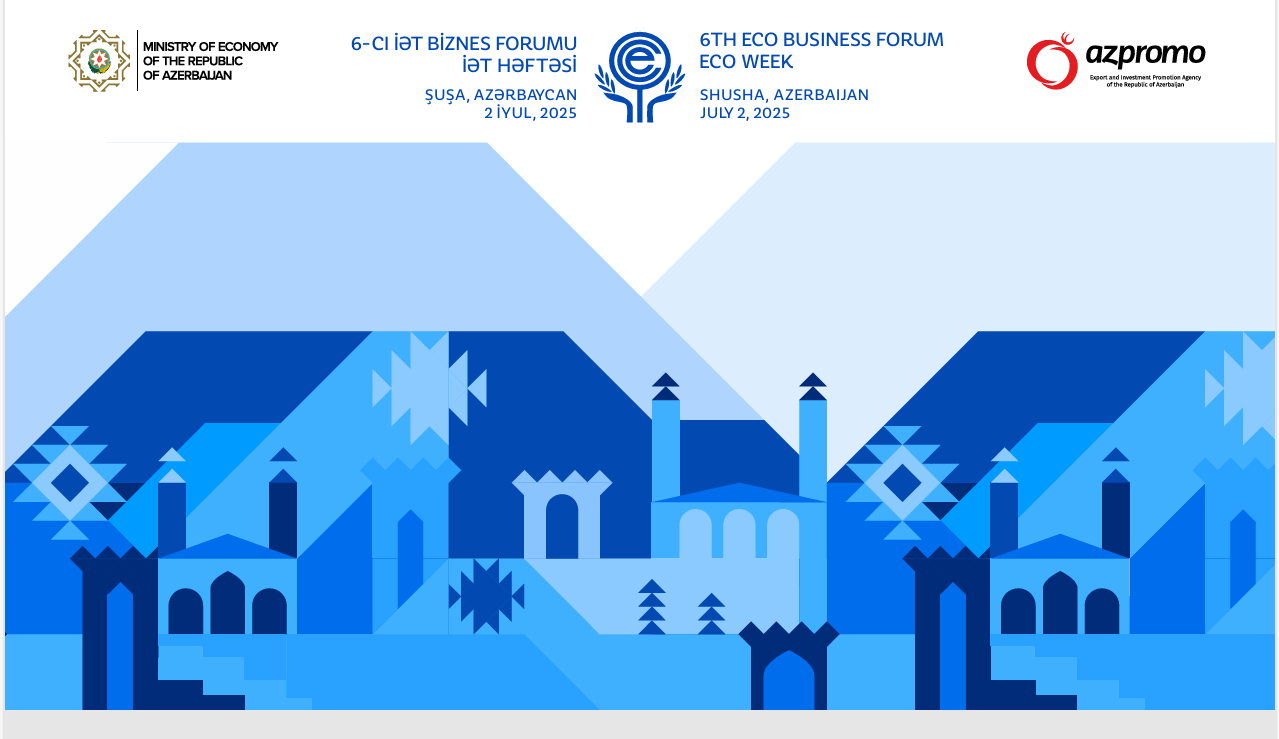 2 iyul tarixində Şuşa şəhərində İqtisadiyyat Nazirliyi, İxracın və İnvestisiyaların Təşviqi Agentliyi – AZPROMO, İqtisadi Əməkdaşlıq Təşkilatının (İƏT) Katibliyi və İƏT Ticarət və Sənaye Palataları Konfederasiyasının təşkilatçılığı ilə 6-cı İƏT biznes forumu keçiriləcək.