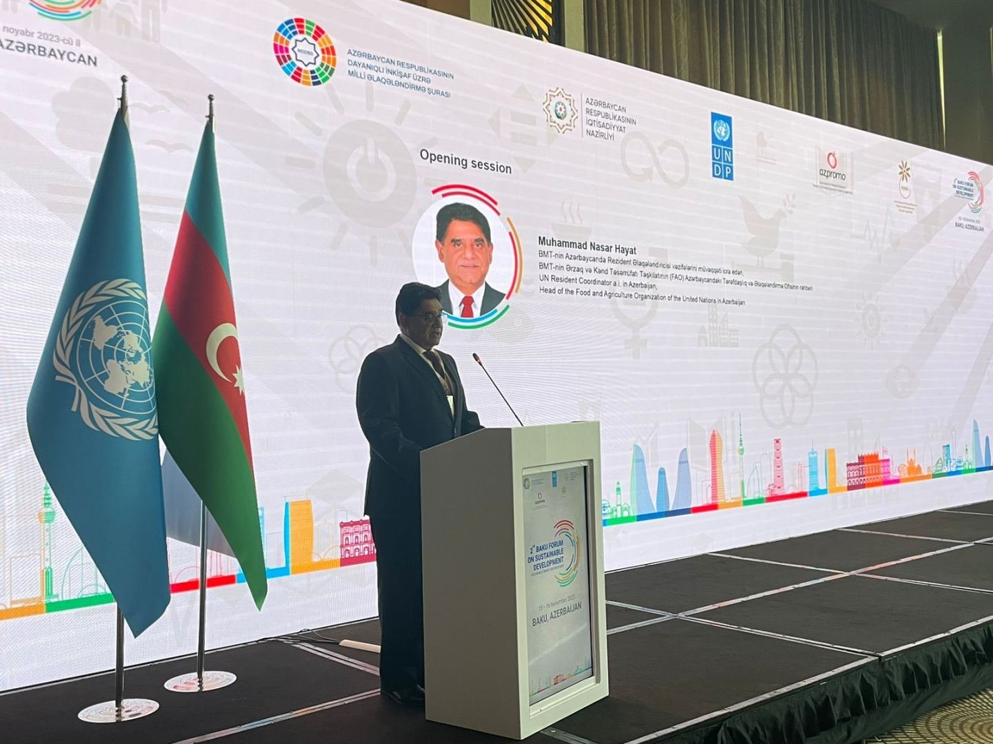 TurkicWorld xəbər verir ki, bunu BMT-nin Ərzaq və Kənd Təsərrüfatı Təşkilatının (FAO) Azərbaycandakı rezident əlaqələndiricisi və nümayəndəsi Məhəmməd Nasar Həyat Dayanıqlı İnkişafa dair II Bakı Forumunda deyib.