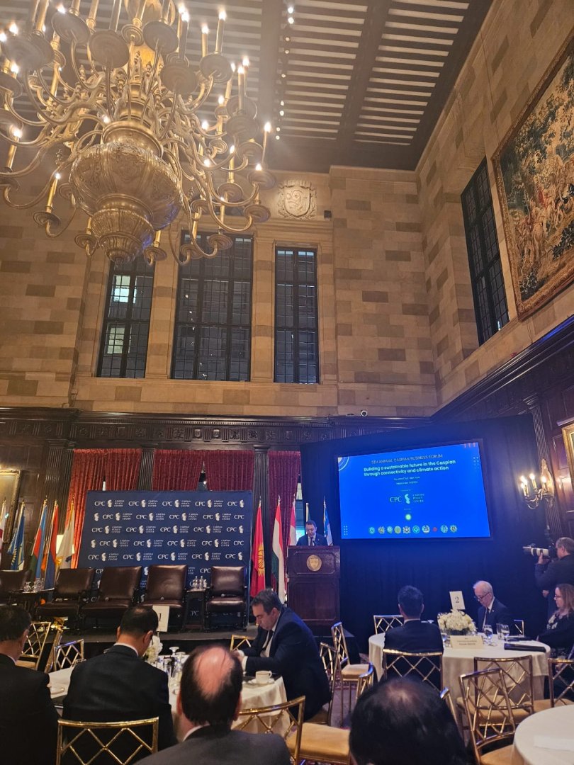 Xarici işlər nazirinin müavini Elnur Məmmədov 5-ci Xəzər Biznes Forumunda "Bağlantı və iqlim fəaliyyəti ilə Xəzər dənizində davamlı gələcəyin yaradılması" mövzusunda çıxış edib.
