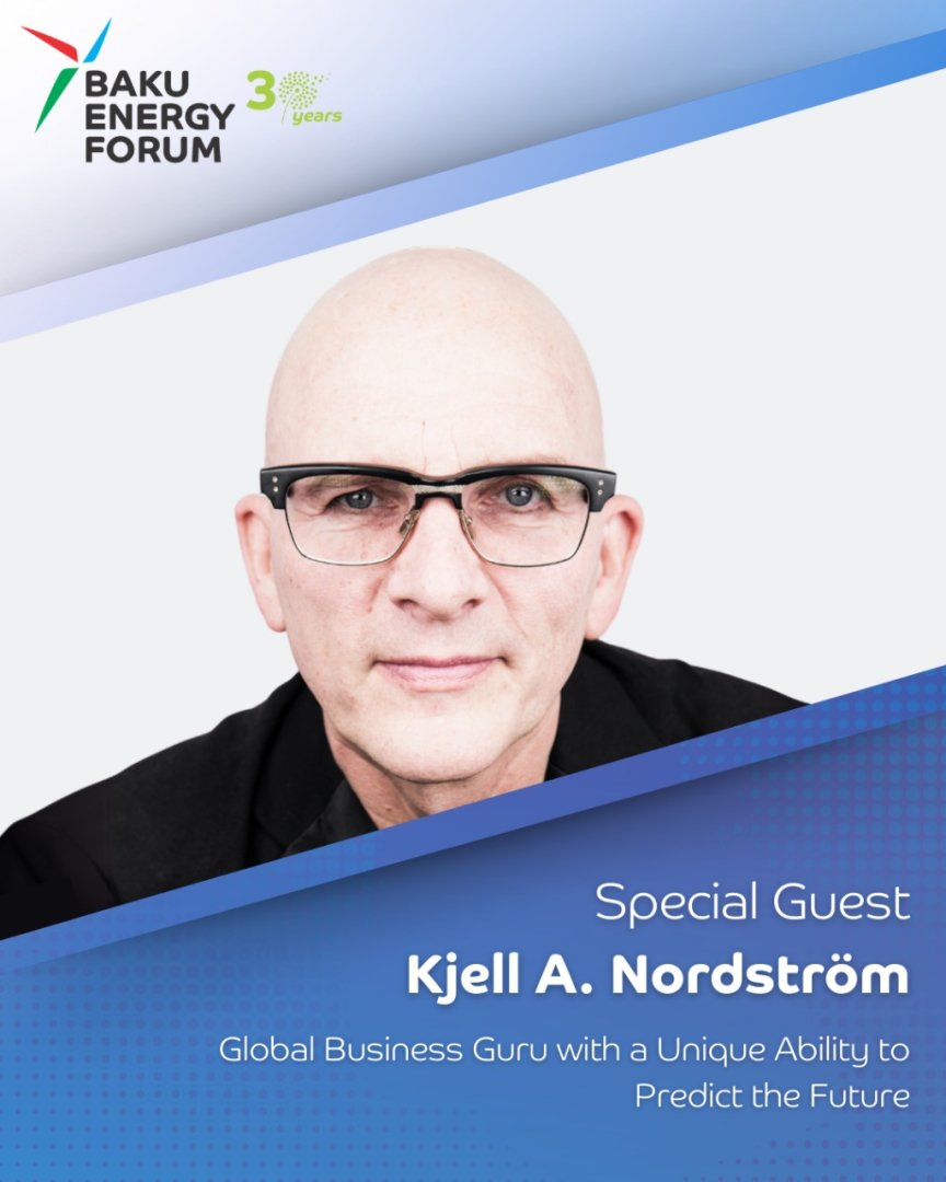 TurkicWorld xəbər verir ki, dünyaca tanınmış global biznes eksperti, məruzəçi, isveçli iqtisadçı, futurist və beynəlxalq "bestseller" kitabların müəllifi Kyel A.Nordström sayca 30-cu olan Yubiley Bakı Enerji Forumunda iştirak edəcək. 4 iyun tarixində Bakı Konqres Mərkəzində tanınmış məruzəçinin xüsusi çıxışı olacaq.
