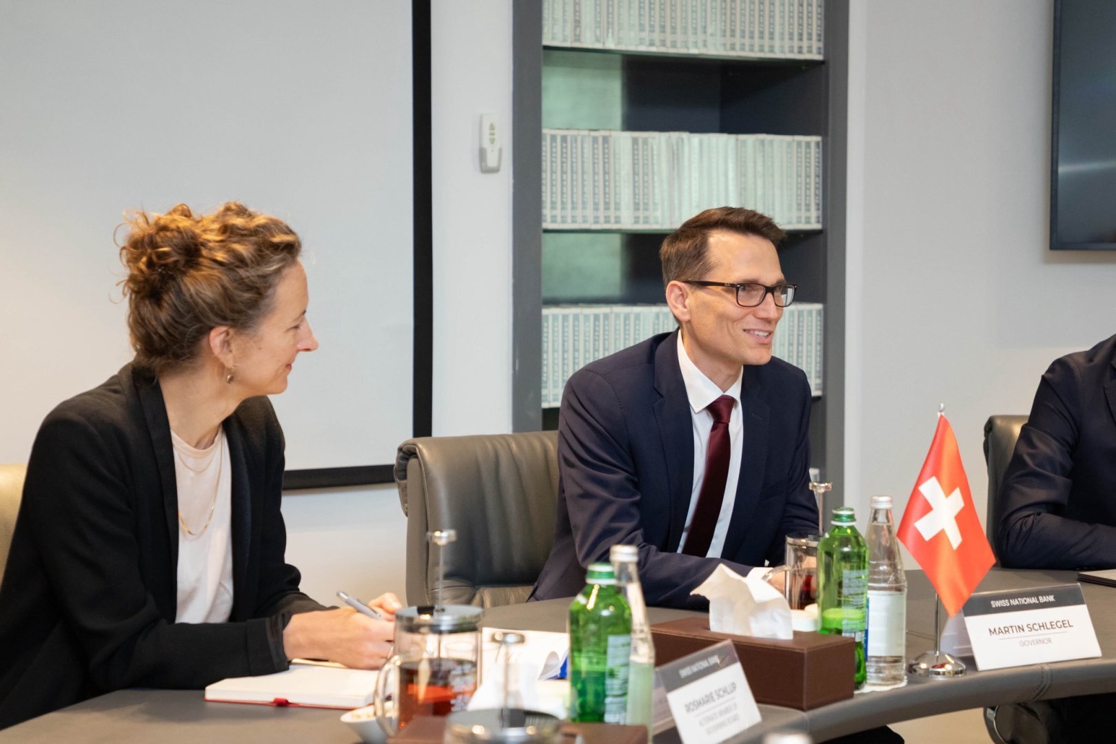 "İsveçrə Milli Bankının sədri Martin Şlegel ilə Azərbaycana ilk işgüzar səfərində görüşməkdən məmnun olduq. Görüş zamanı qlobal iqtisadiyyat və maliyyə bazarlarında gedən proseslər, ortamüddətli dövr üçün pul siyasəti və maliyyə sabitliyi üzrə prioritetlər, eləcə də maliyyə sektorunun inkişafına dair rəqəmsal təşəbbüslər ətrafında geniş fikir mübadiləsi apardıq.