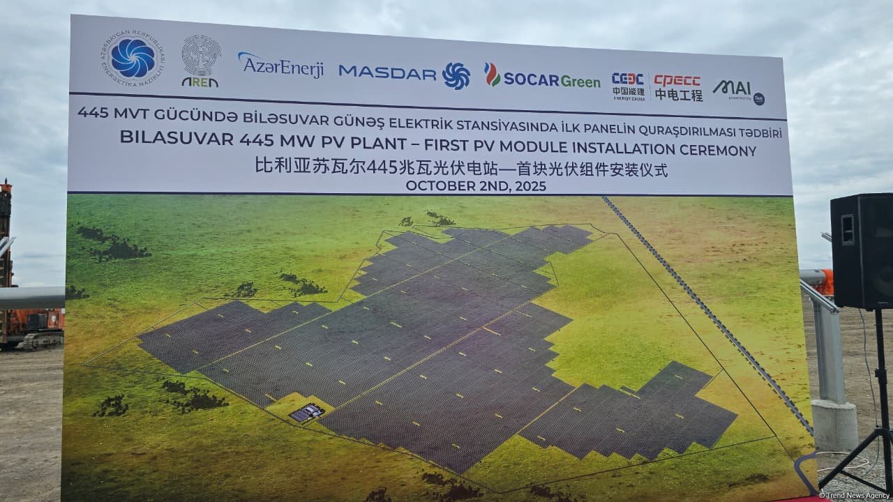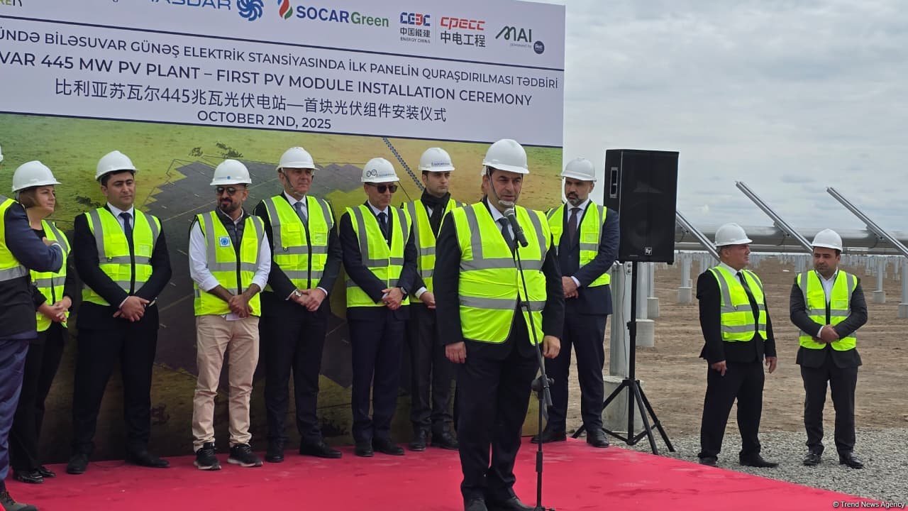 Biləsuvar rayonunda inşa edilən 445 MVt gücümdə Günəş Elektrik Stansiyasında birinci panelin quraşdırılması nərasimi keçirilir.