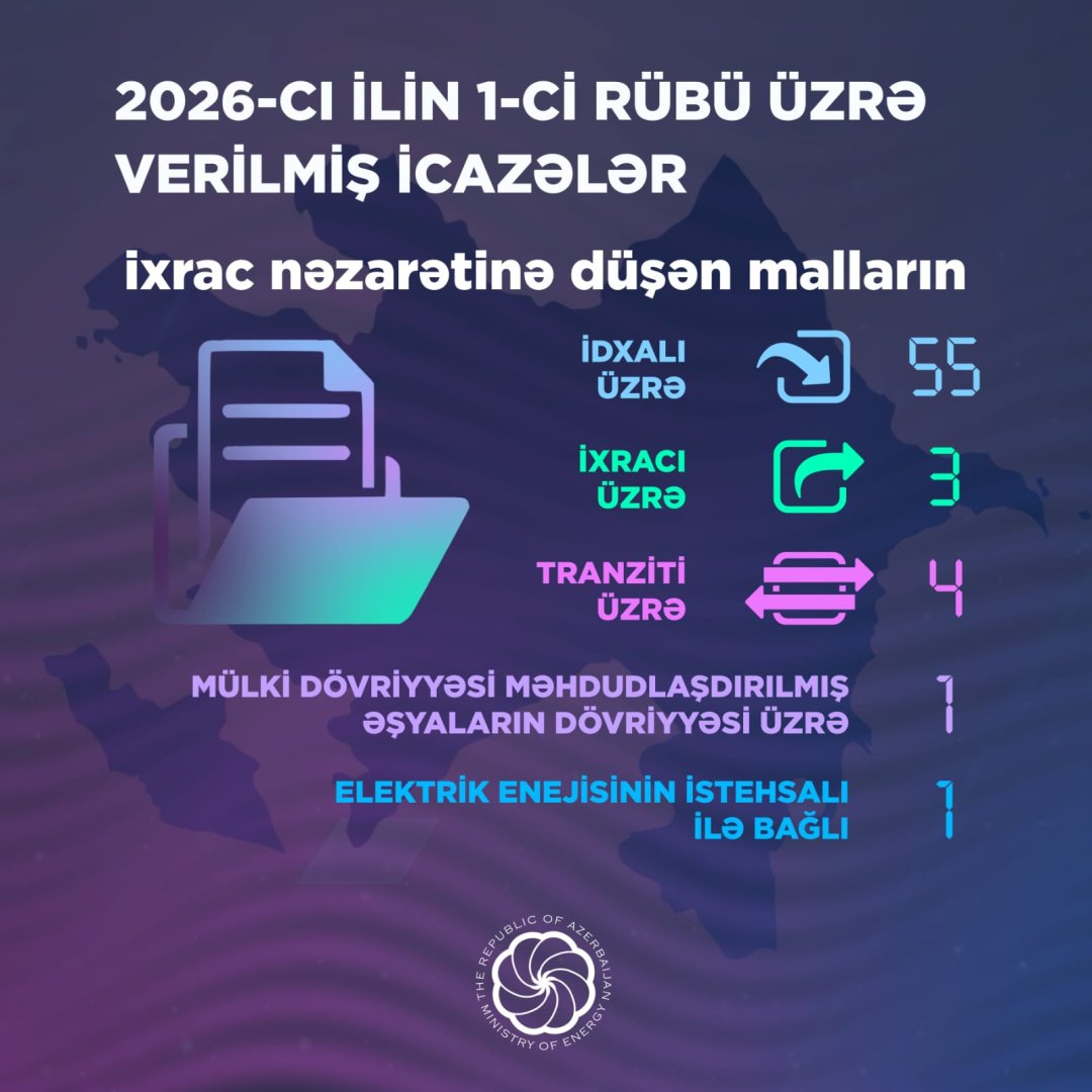 2026-cı ilin birinci rübündə Energetika Nazirliyi tərəfindən verilən icazələrin sayı açıqlanıb.