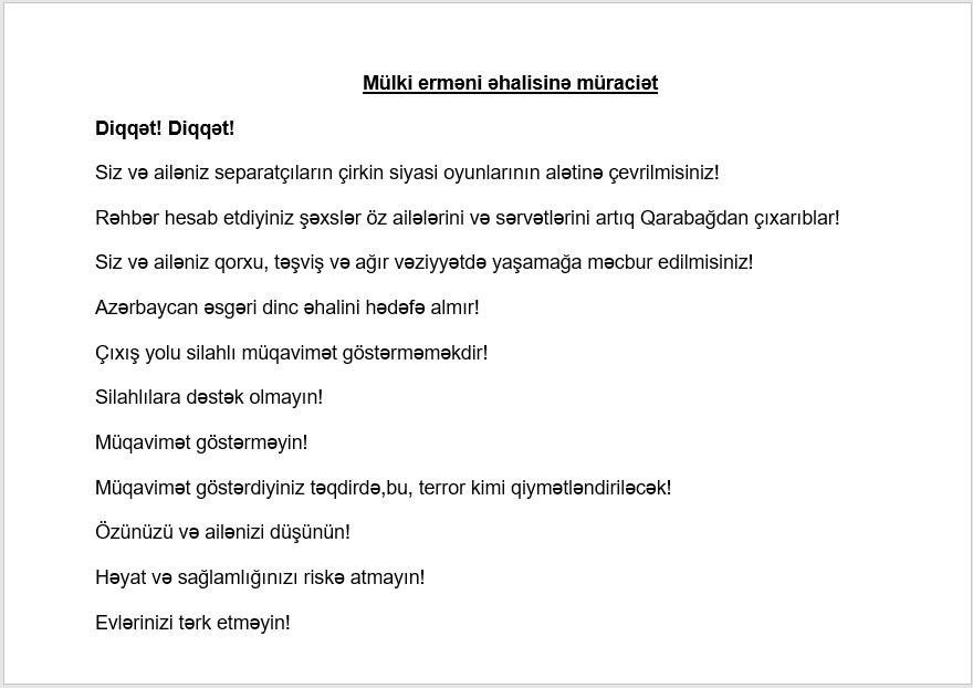 Antiterror tədbirlərinin həyata keçirildiyi ərazilərdə erməni mülki şəxslərə məlumat vərəqələri paylanılır.