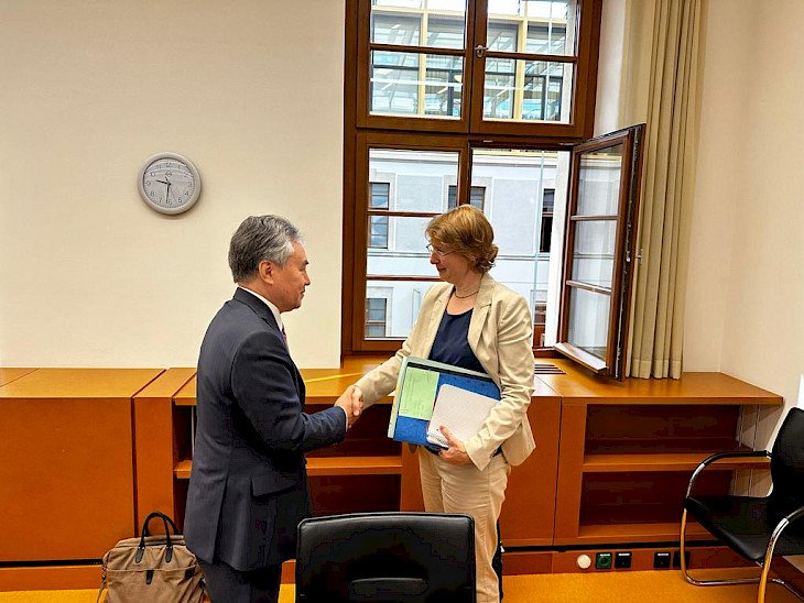 Qırğız Respublikasının Xarici İşlər Naziri Jeenbek Kulubayev Berlində Almaniya Federativ Respublikasının Ətraf Mühit, Təbiəti Mühafizə, Nüvə Təhlükəsizliyi və İstehlakçıların Hüquqlarının Müdafiəsi üzrə Federal Nazirliyinin Dövlət Katibi Kristian Roleder ilə görüşüb.