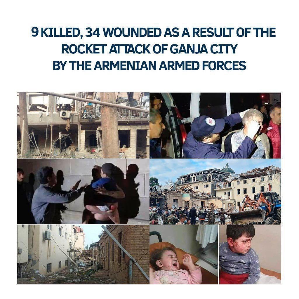 2020-ci il oktyabrın 11-də Birinci vitse-prezident Mehriban Əliyeva rəsmi "İnstagram" səhifəsində Ermənistanın Gəncə şəhərinə raket hücumu ilə bağlı paylaşım edib.