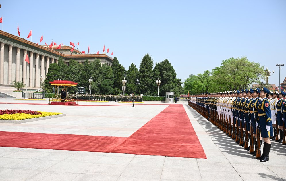 Çin Xalq Respublikasında dövlət səfərində olan Azərbaycan Respublikasının Prezidenti İlham Əliyevin aprelin 23-də rəsmi qarşılanma mərasimi keçirilib.