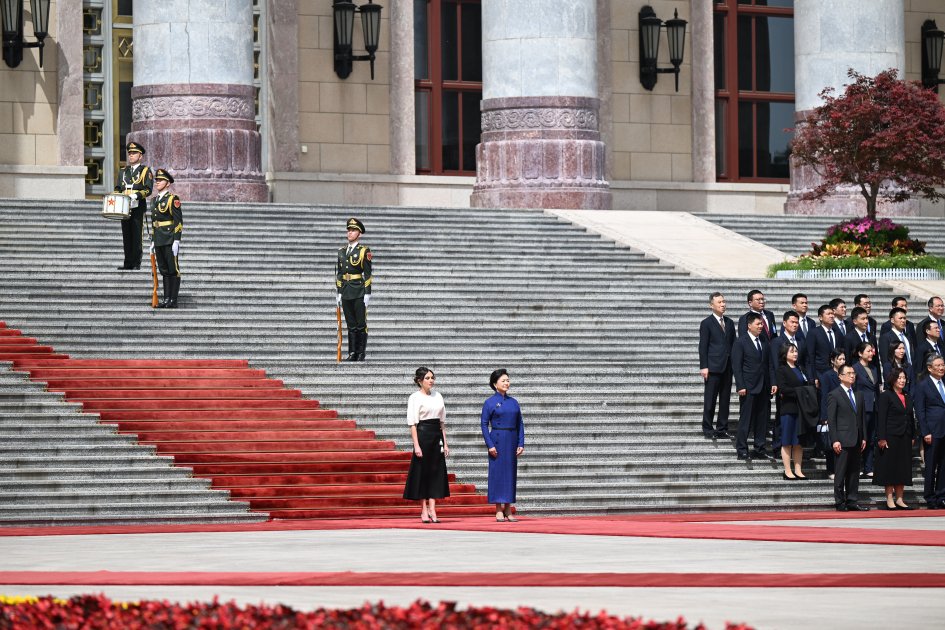 Çin Xalq Respublikasının Sədri Si Cinpin və birinci xanım Pen Liyuan Azərbaycan Prezidenti İlham Əliyevi və birinci xanım Mehriban Əliyevanı qarşıladılar.
