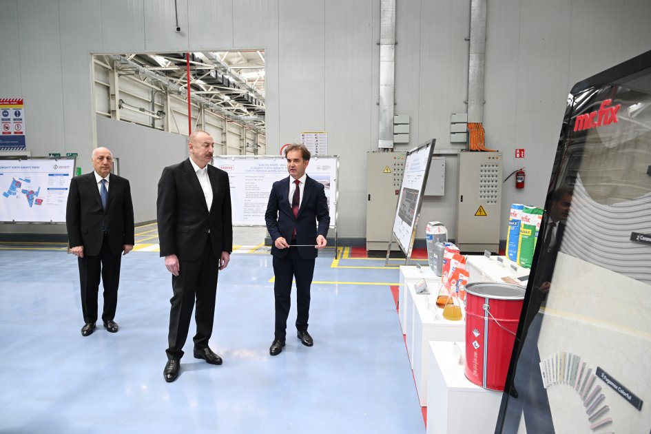 Tikinti kimyəvilərinin istehsalı zavodu ilə bağlı bildirildi ki, “Kartaş Kimya” MMC-yə 2022-ci ilin iyulunda Sumqayıt Kimya Sənaye Parkının rezidenti statusu verilib. Təməli 2023-cü ildə dövlətimizin başçısı tərəfindən qoyulan zavodun tikintisi üçün 2,5 hektar ərazi ayrılıb.