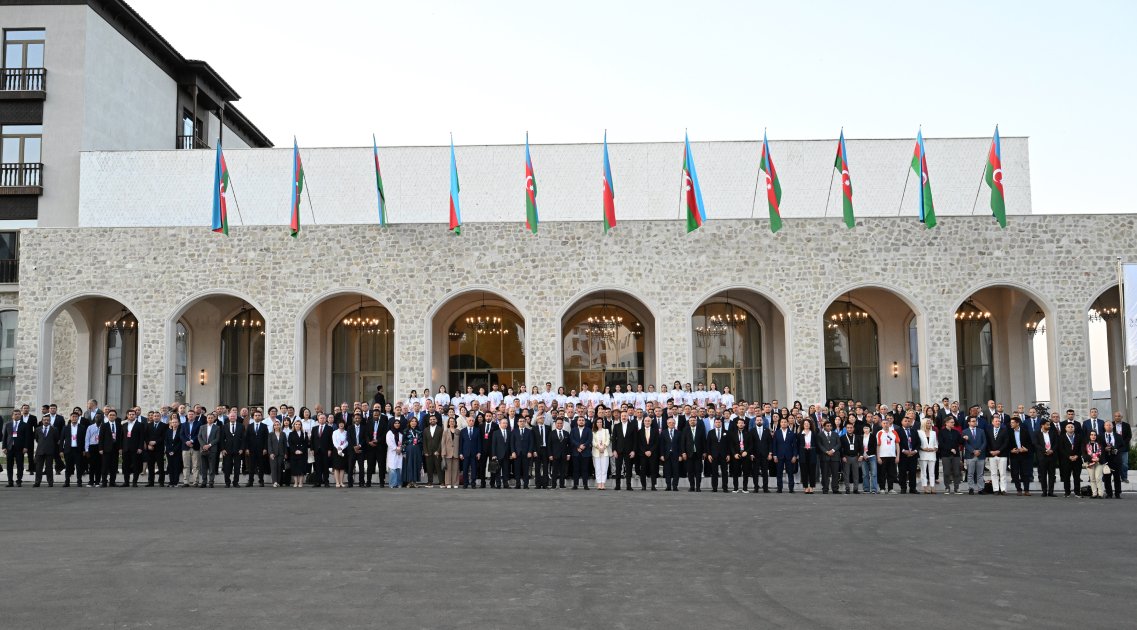Xanımlar və cənablar, biz alqışladıq. Lakin gəlin, Azərbaycan Respublikasının Prezidenti, Zati- aliləri cənab İlham Əliyevi bir daha alqışlayaq.