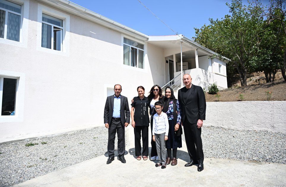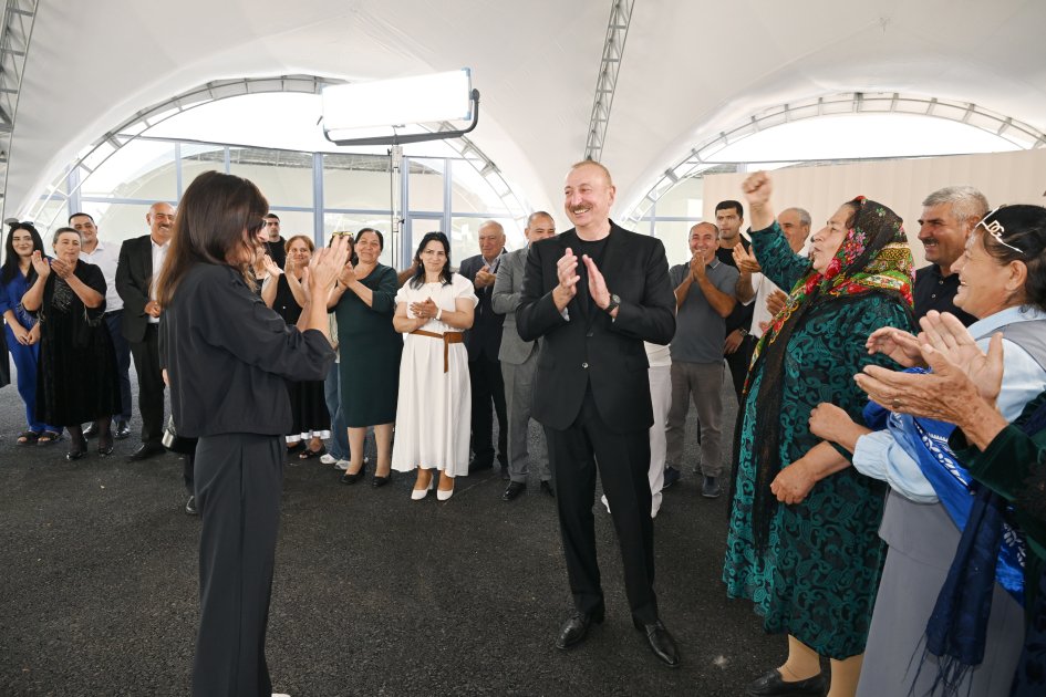 Prezident İlham Əliyev: Burada sizin üçün çox gözəl şərait yaradılıb. Mənzillər hamısı təmirli, şərait, həyətyanı sahələr, su, bütün infrastruktur, hər şey var. Ən önəmlisi də gözəl təbiət və Vətən torpağı. Bu münasibətlə sizi təbrik edirəm.