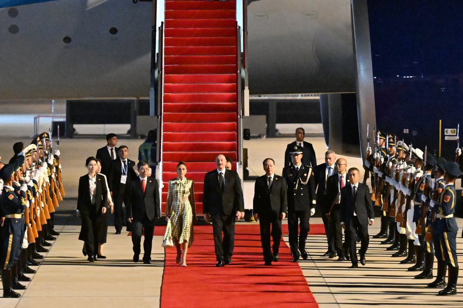 TurkicWorld xəbər verir ki, Tiencin şəhərinin Binxay Beynəlxalq Hava Limanında dövlətimizin başçısının şərəfinə fəxri qavorul dəstəsi düzülmüşdü.