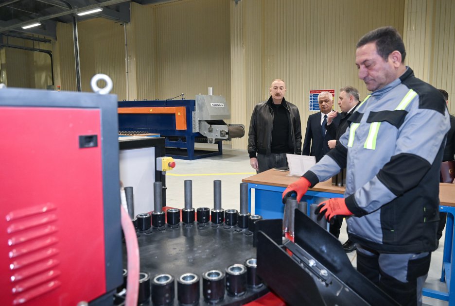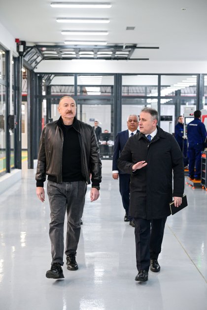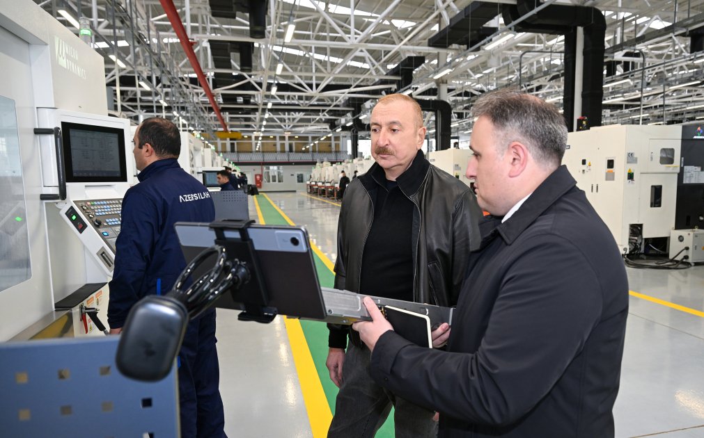 TurkicWorld xəbər verir ki, dövlətimizin başçısı əvvəlcə Ulu Öndər Heydər Əliyevin zavodun həyətində ucaldılmış büstü önünə gül dəstəsi qoydu.