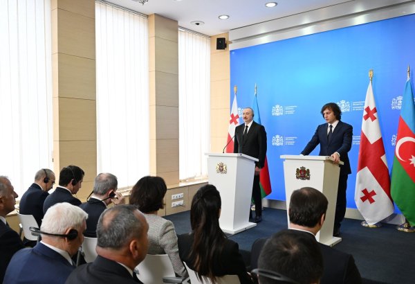 Rəsmi Xronika Prezident İlham Əliyev və Baş nazir İrakli Kobaxidze mətbuata bəyanatlarla çıxış ediblər