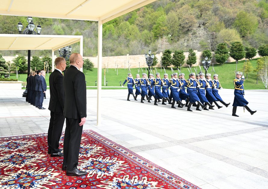 Fəxri qarovul dəstəsi hərbi marşın sədaları altında Azərbaycan Prezidenti İlham Əliyevin və Çexiyanın Baş naziri Andrey Babişin qarşısından keçdi.