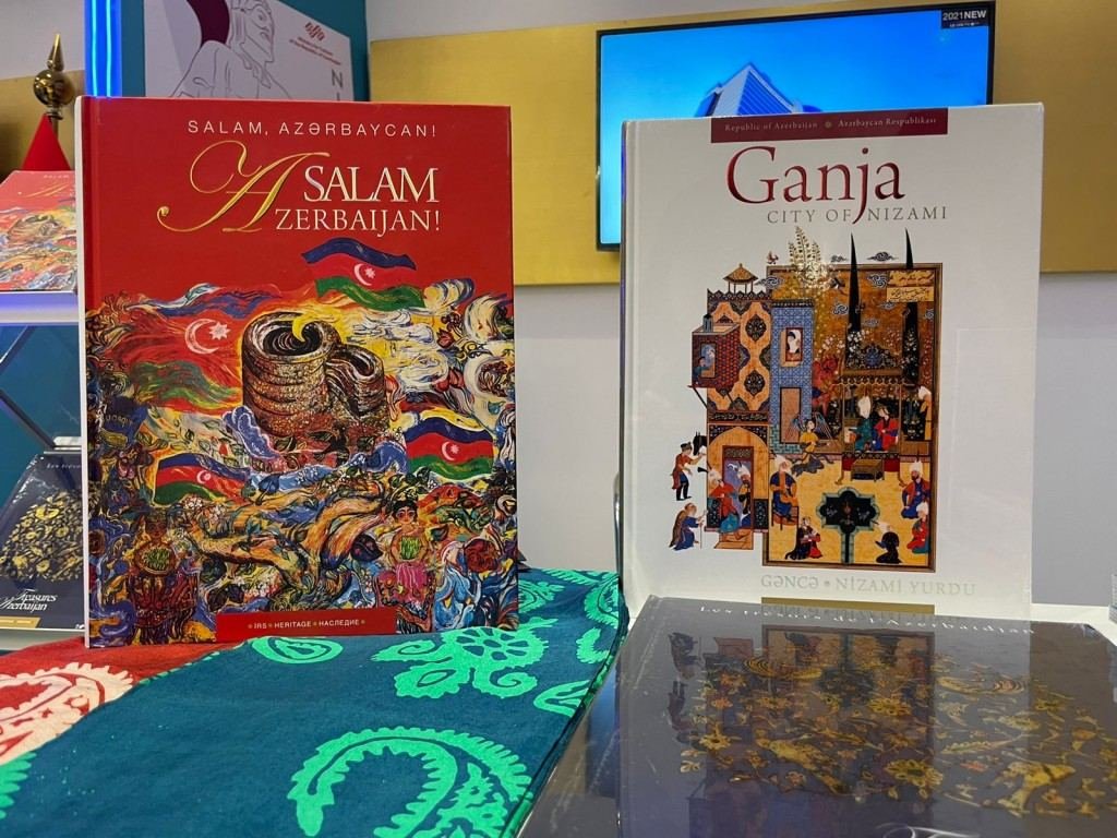 Sərgidə Azərbaycan mədəniyyəti və tarixinə həsr olunan videoçarxlar, cari ildə 880 illik yubileyi qeyd olunan dahi Azərbaycan şairi və mütəfəkkiri Nizami Gəncəvi, Azərbaycanın mədəniyyəti paytaxtı olan Şuşa şəhəri, o cümlədən Qarabağ haqqında dolğun məlumatlar ziyarətçilərə təqdim olunur. Həmçinin, ziyarətçilərə ölkəmiz haqqında kitablar da paylanılır.