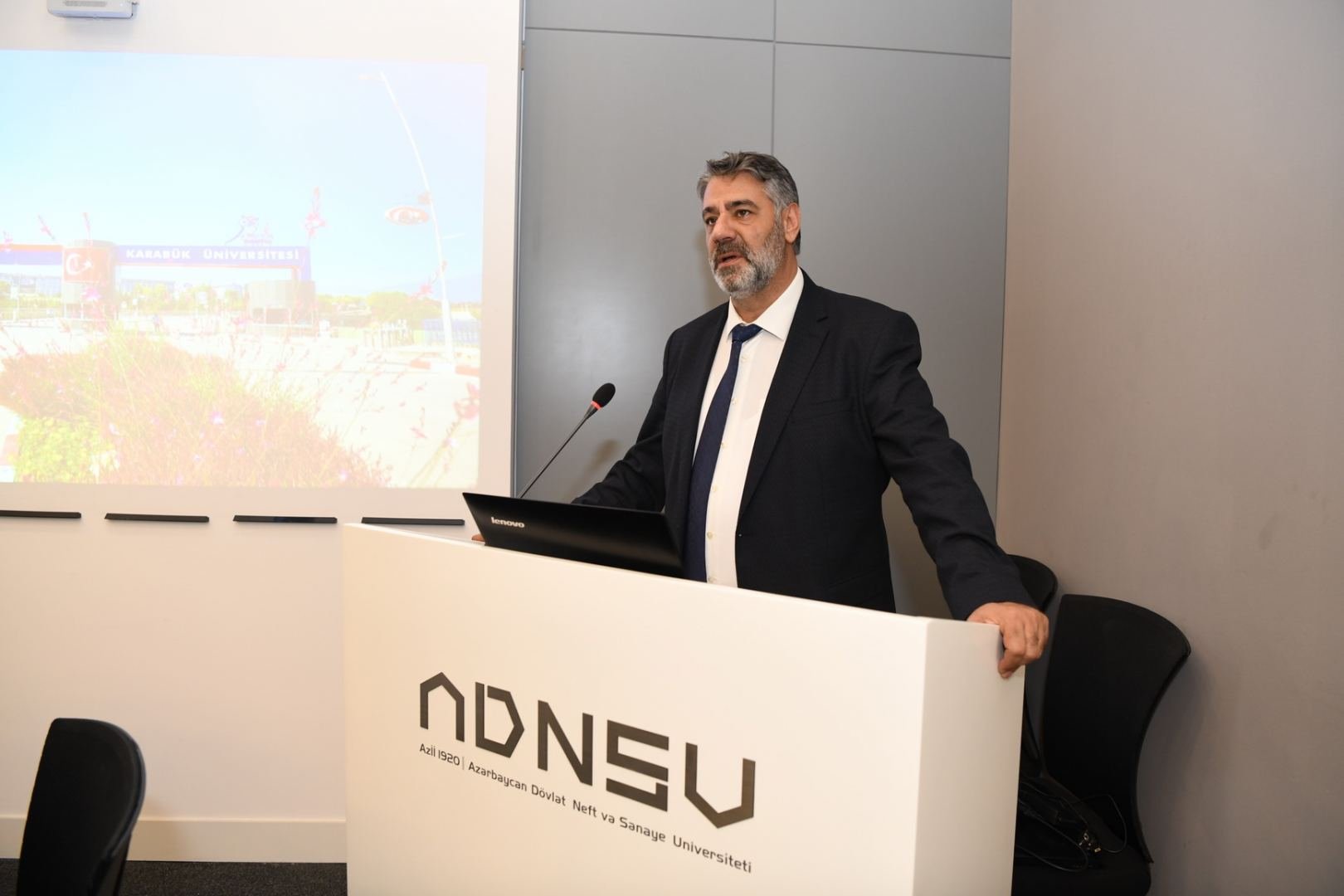 Öncə professor Refik Polat Karabük Universiteti haqqında tədbir iştirakçılarına geniş məlumat verib. O, video-təqdimatla çıxış edərək rəhbəri olduğu universitetin qısa müddətdə qazandığı uğurlardan, elmi nailiyyətlərindən, maddi-texniki imkanlarından bəhs edib, dünyanın yüzlərlə universiteti ilə əməkdaşlıq əlaqələrinin olduğunu deyib. Cəmi 14 ildir ali təhsil müəssisəsi kimi fəaliyyət göstərən Karabük Universitetinə uğur gətirən əsas amilin elmi nailiyyətlərinin yüksəkliyi ilə bağlı olduğu diqqətə çatdırılıb.