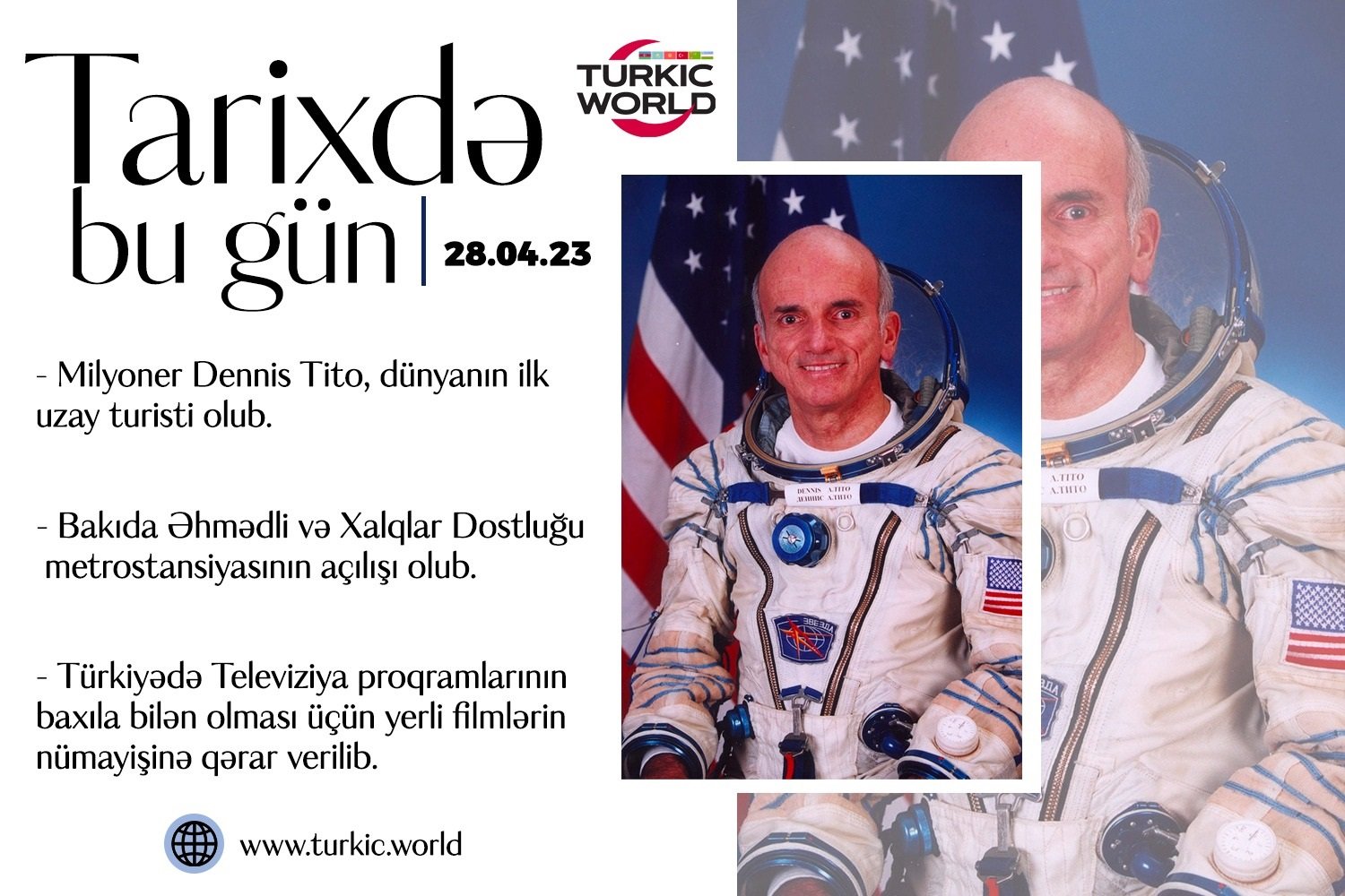 28/04/2001 - Milyoner Dennis Tito, dünyanın ilk uzay turisti olub.