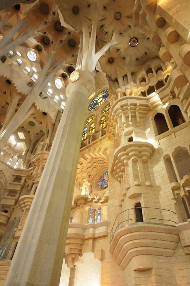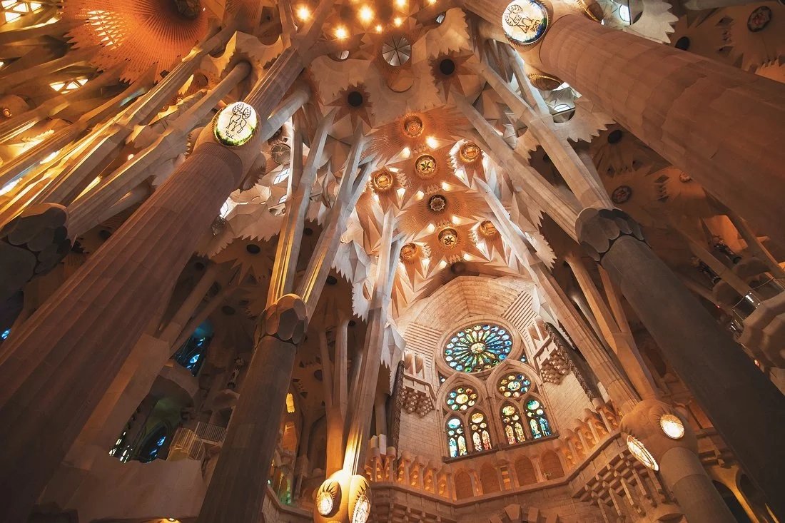 Qaudi hələ öz sağlığında məbədin daxili hissələrinə dair planlar hazırlayıb. Məhz onun layihəsinə əsasən, kilsənin daxilində düz xətlərə deyil, hiperboloid, ellipsoid, paraboloid kimi həndəsi fiqurlara üstünlük verilib. Bu fiqurlar ilk dəfə təqribən Qaudinin həyatının sonlarına doğru peyda olmağa başlayıb. Memar sütunları düz deyil, müəyyən əyilmiş variantda inşa etməyi nəzərdə tutub.