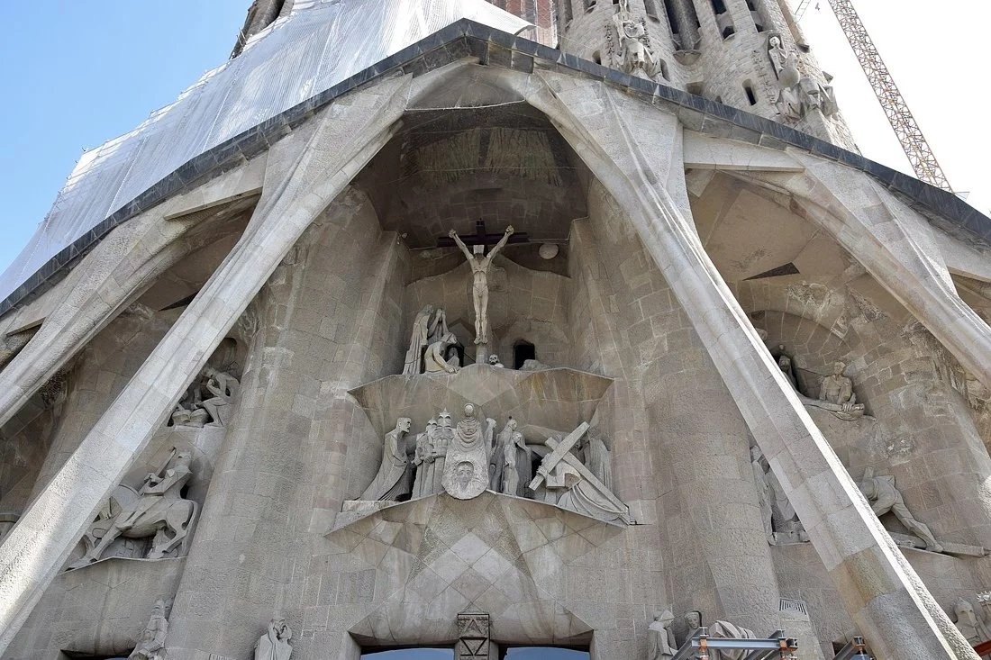 1911-ci ildə memar, İsa peyğəmbərin edamından bəhs edən fasadın planını hazırlayıb. Lakin onun tikintisinə yalnız Qaudinin ölümündən sonra başlanılıb. 1925-ci ildə isə 100 metrlik zəng qülləsi inşa edilib. Bu, dahi memarın yaşadığı müddətdə inşa edilmiş yeganə zəng qülləsi olub.