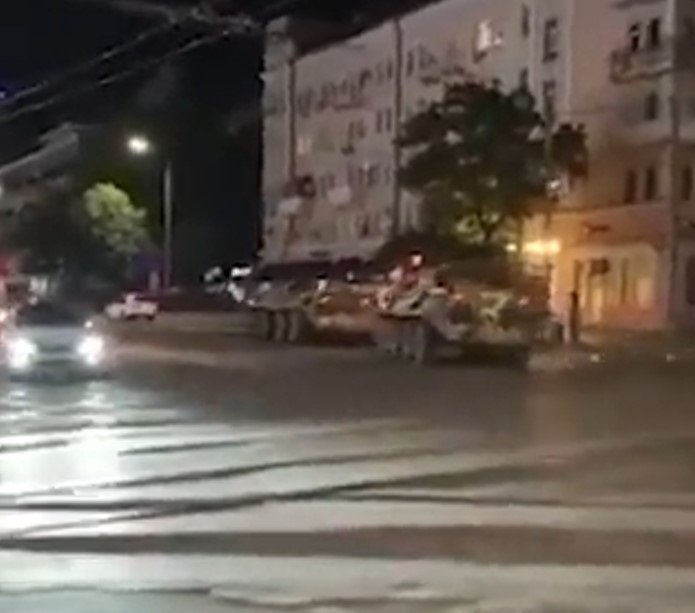 Rusiyanın Rostov vilayətində hərbi texnikalar küçədə görüntüləniblər.