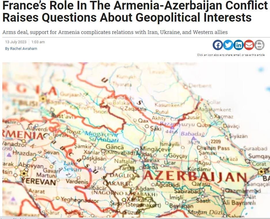 Dona Qrasiya Diplomatiya Mərkəzinin təsisiçisi və baş direktoru, tanınmış siyasi şərhçi və jurnalist Reyçel Avrahamın qələmə aldığı məqalədə diqqətə çatdırılıb ki, Fransanın Ermənistanı hərbi cəhətdən dəstəklədiyi barədə məlumatlar mövcuddur.