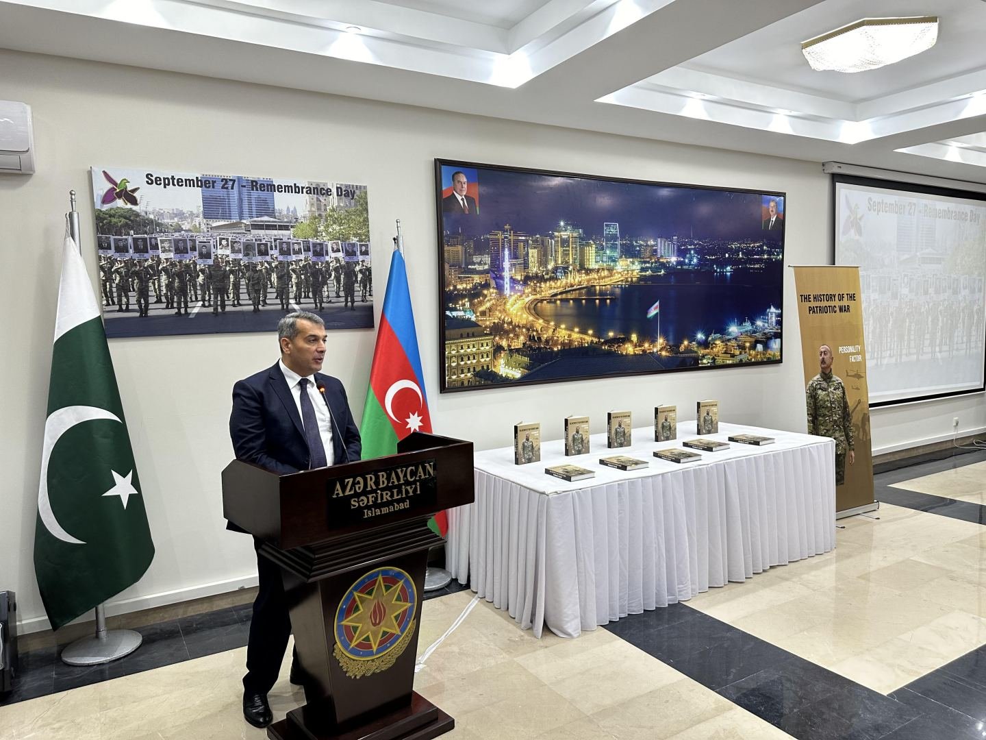 Azərbaycan Respublikasının Pakistandakı Səfirliyi bu ölkədə 27 Sentyabr – Anım Günü ilə bağlı tədbir təşkil edib, eləcə də “Vətən müharibəsi tarixi - Şəxsiyyət faktoru” adlı kitabın təqdimatını keçirib.