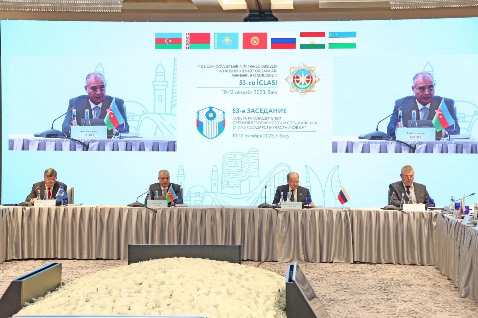 Oktyabrın 11-də Bakı şəhərində MDB-yə üzv dövlətlərin təhlükəsizlik orqanları rəhbərləri Şurasının (SORB) 53-cü iclası keçirilib. Tədbirdə Azərbaycan Respublikası Dövlət Təhlükəsizliyi Xidmətinin rəisi general-polkovnik Əli Nağıyev, Azərbaycan Respublikası Xarici Kəşfiyyat Xidmətinin rəisi general-polkovnik Orxan Sultanov və MDB ölkələrinin müvafiq orqanlarının rəhbərləri iştirak ediblər.