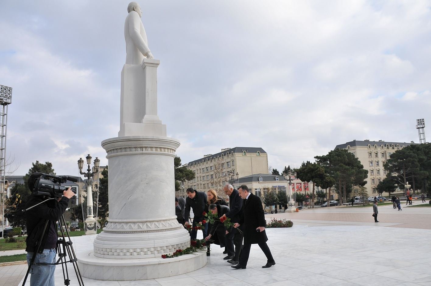 İştirakçılar Xırdalan şəhərinin mərkəzində Ümummilli Liderin abidəsini ziyarət edərək, önünə gül dəstələri qoyub, dahi rəhbərin əziz xatirəsini ehtiramla anıblar.