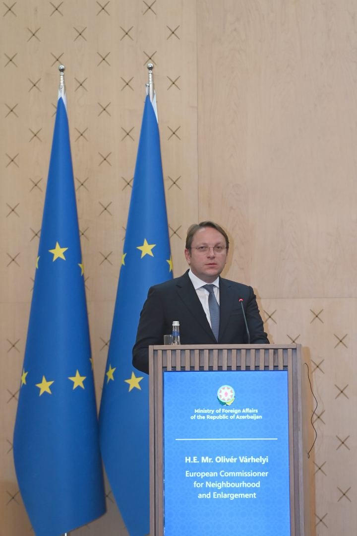 Komissar Oliver Varhelyi Aİ üçün Azərbaycan ilə tərəfdaşlıq münasibətlərinin böyük əhəmiyyət kəsb etdiyini və bu münasibətlərin daha da gücləndirilməsinin vacib olduğunu qeyd edib. O, Azərbaycanı Aİ-nin etibarlı tərəfdaşı olduğunu vurğulayıb. Komissar, iqtisadi sərmayə planı çərçivəsində Azərbaycana 2 milyard avroluq maliyyə paketinin ayrıldığını bildirib və bu çərçivədə konkret layihələrin reallaşmasının nəzərdən keçirildiyini qeyd edib. O.Varhelyi, habelə Aİ-nin Azərbaycanda həyata keçirilən bərpa və yenidənqurma prosesində iştirak etməyə hazır olduğunu ifadə edib.