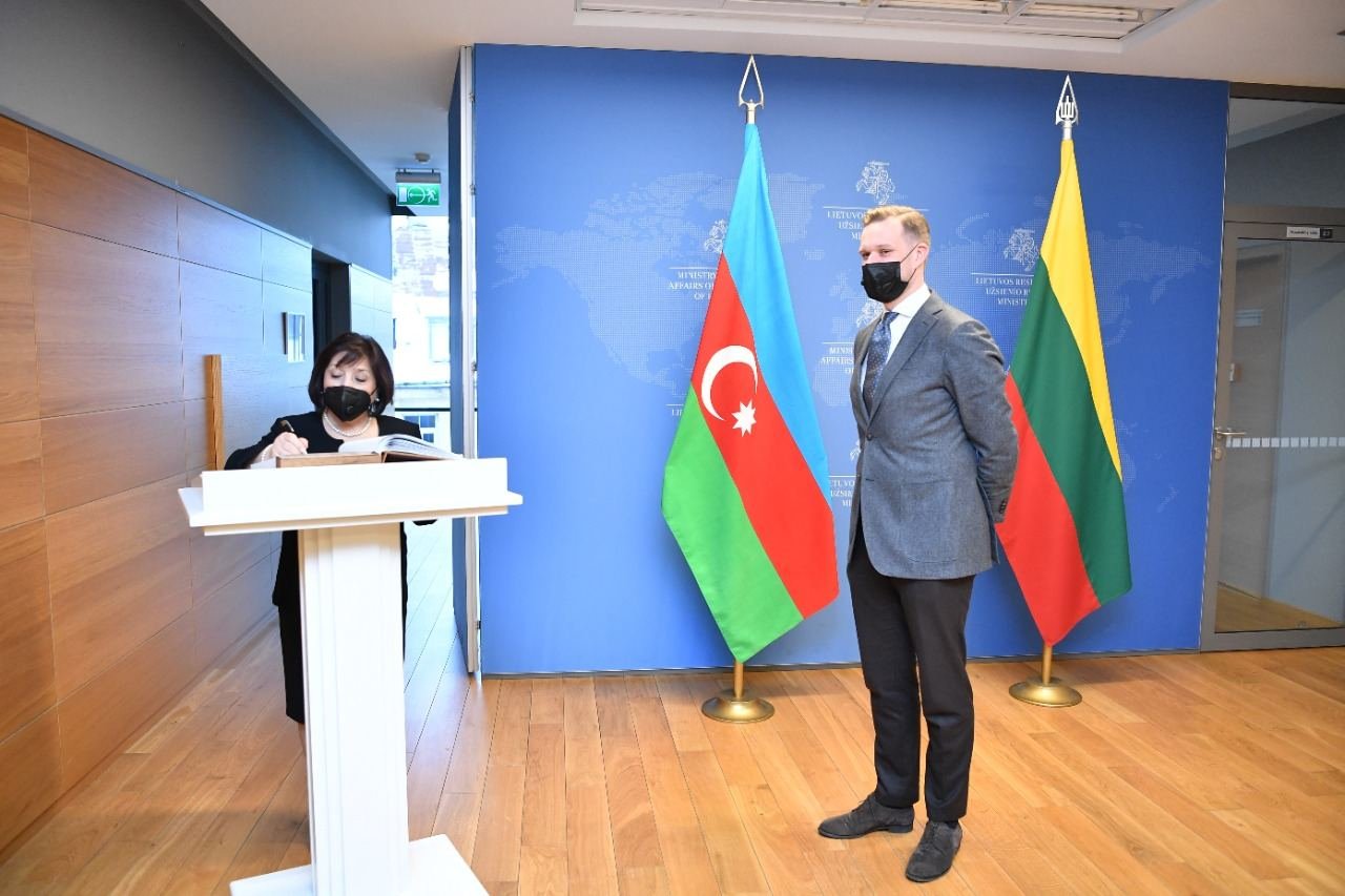 Göstərilən yüksək qonaqpərvərliyə görə təşəkkürünü bildirən Milli Məclisin sədri Sahibə Qafarova bu səfərin onun parlamentin spikeri kimi Litvaya ilk səfəri olduğunu və səfərin Litva Respublikası Seyminin sədri Viktoriya Çmilite Nielsenin dəvəti ilə reallaşdığını diqqətə çatdırıb. O, səfər çərçivəsində keçirdiyi görüşlərdən məmnunluğunu ifadə edərək, ümidvar olduğunu bildirib ki, bu səfər ikitərəfli əlaqələrimizin daha da inkişafına töfhə verəcək və Azərbaycan ilə Litva arasında dostluq və əməkdaşlıq bundan sonra da uğurla inkişaf edəcək.