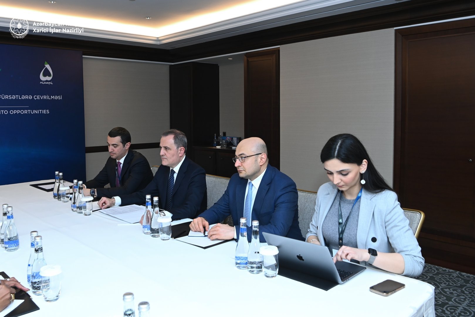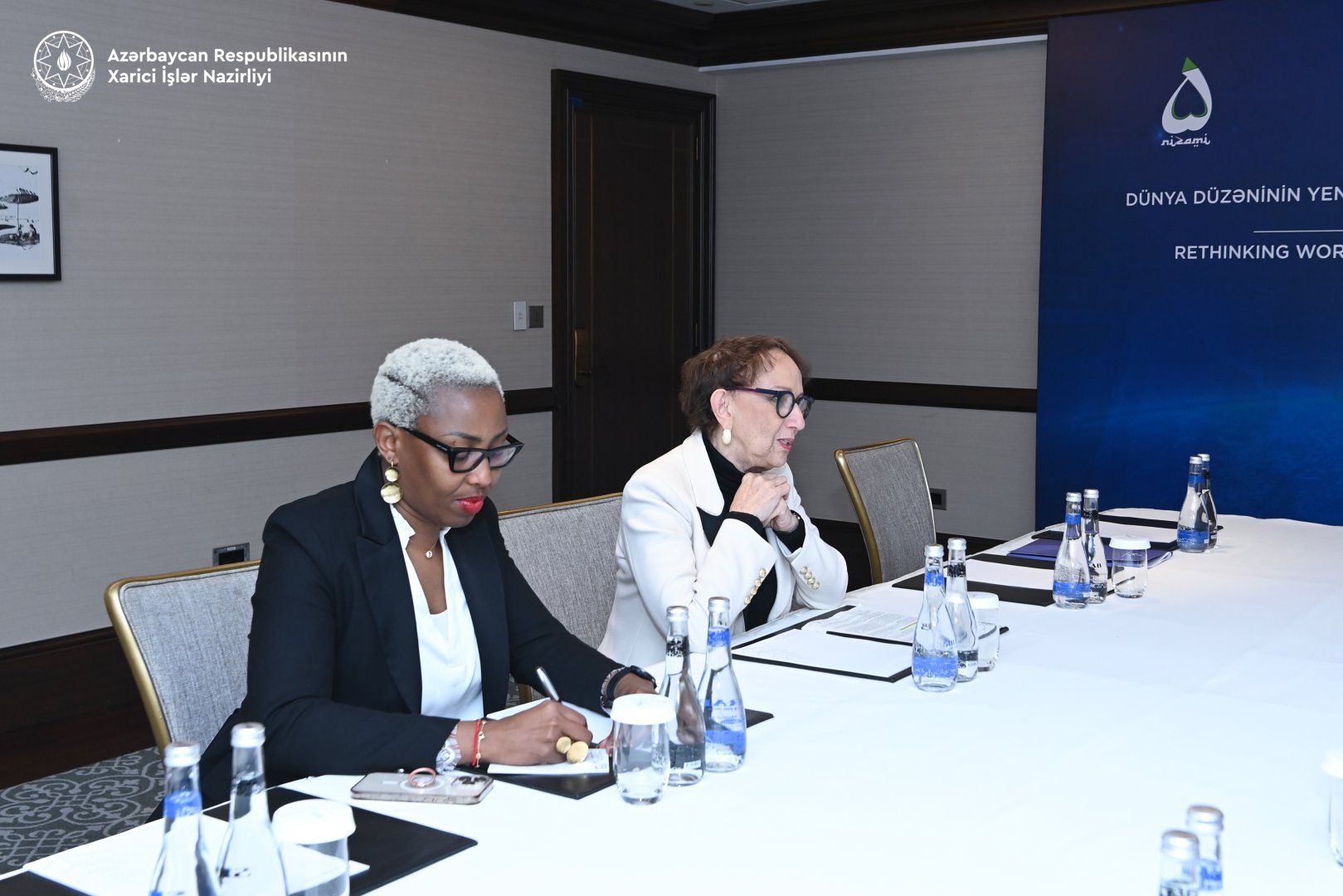 XII Qlobal Bakı Forumu çərçivəsində Azərbaycan Respublikasının xarici işlər naziri Ceyhun Bayramov BMT-nin Ticarət və İnkişaf Konfransının (UNCTAD) baş katibi Rebeka Qrinspanla görüşüb.
