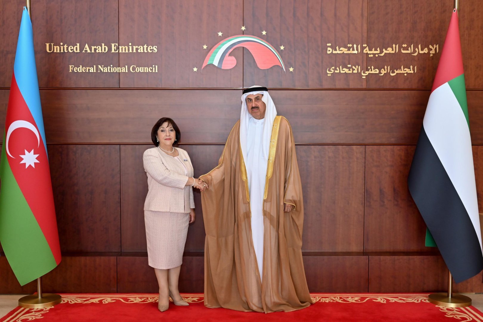 Milli Məclisin sədri Sahibə Qafarova Birləşmiş Ərəb Əmirliklərinə rəsmi səfəri çərçivəsində mayın 6-da bu ölkənin Federal Milli Şurasının sədri Saqr Qobaş ilə görüşüb.
