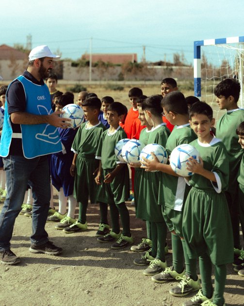 Bundan əlavə Xızı rayonunun Giləzi qəsəbəsində 100-ə yaxın uşağa idman geyim dəstləri və futbol topları təqdim olunub.