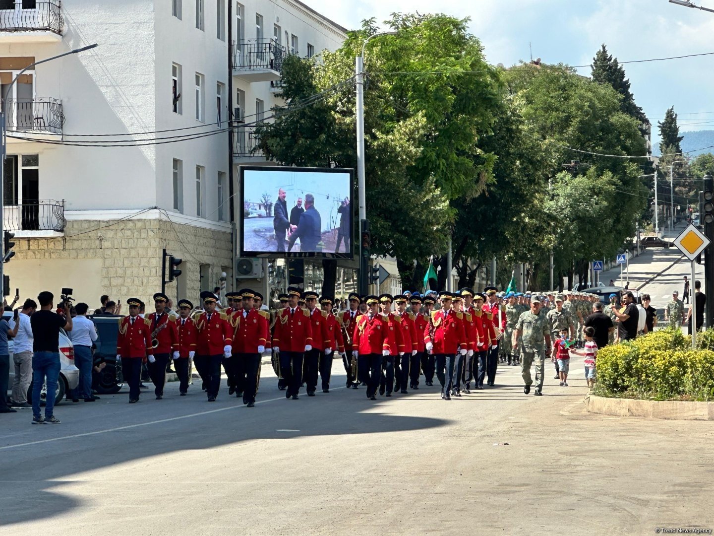 Hərbi vətənpərvərlik mahnıları, qələbə marşının sədaları yerli sakinlərinə və şəhərin qonaqlarına xoş ovqat bəxş edib və böyük maraqla dinlənilir. Azad Xankəndi torpağında yürüş edən hərbi qulluqçular, vətəndaşlar tərəfindən alqışlarla qarşılanır. Bayram yürüşü şəhərin Zəfər meydanında başa çatacaq.
