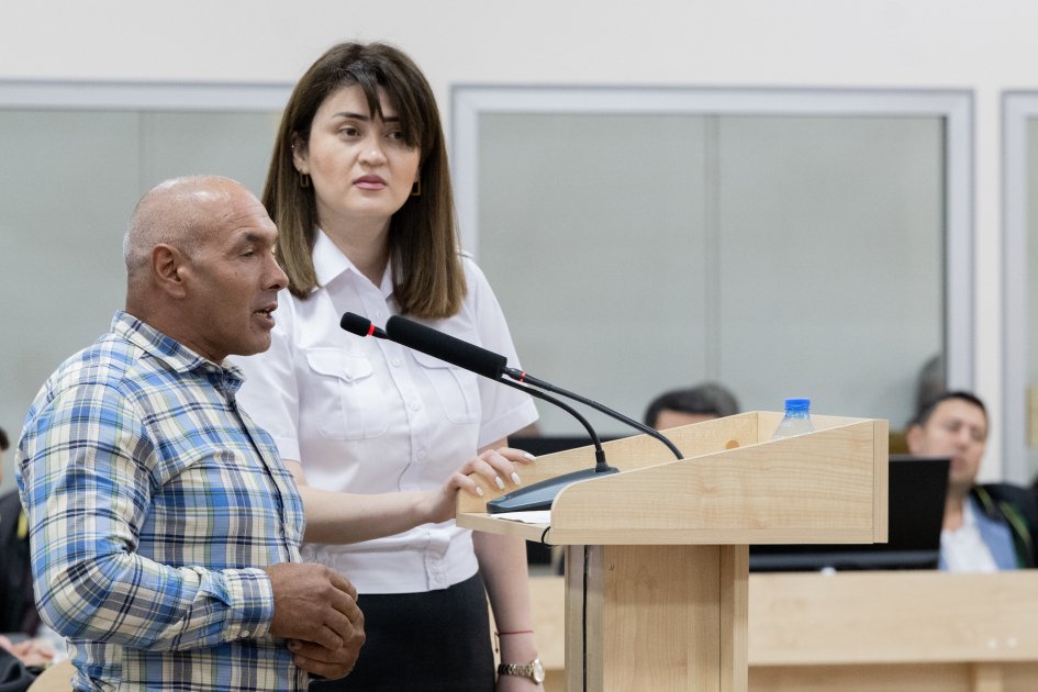 Hakim Zeynal Ağayev prosesdə ilk dəfə iştirak edən zərərçəkmiş şəxslərə məhkəmə heyətini, dövlət ittihamını müdafiə edən prokurorları, tərcüməçiləri və s. təqdim edib, habelə onların qanunvericiliklə nəzərdə tutulmuş hüquqlarını və vəzifələrini izah edib.
