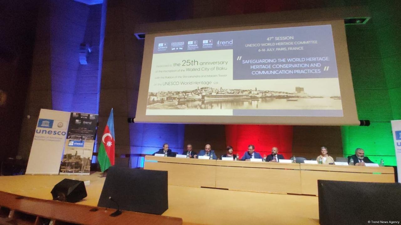 Qeyd edək ki, UNESCO-nun 6–16 iyul tarixlərində keçirilən Dünya İrs Komitəsinin 47-ci sessiyası çərçivəsində müxtəlif mövzularda tədbirlər təşkil olunub. Bu tədbirlər arasında xüsusi yer tutanlardan biri, 11 iyul tarixində baş tutan və İçərişəhərin UNESCO-nun Dünya İrs Siyahısına daxil edilməsinin 25 illiyinə həsr olunan təqdimat olub.