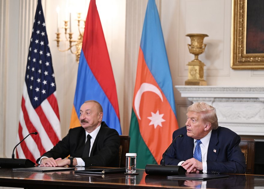 ABŞ Ermənistan-Azərbaycan Donald Tramp ABŞ Azərbaycan Ermənistan münasibətləri Azərbaycan Ermənistan sülh razılaşması Azərbaycan Ermənistan danışıqları ABŞ Azərbaycan Ermənistan liderlər görüşü Azərbaycan Ermənistan sülh müqaviləsi Azərbaycan-Ermənistan sülh sazişi ABŞ Prezidenti Donald Tramp Ağ Evdə mətbuata bəyanatla çıxış edib 9 Avqust 00:15 77 Facebook Twitter Pinterest Reddit WhatsApp Bakı. TurkicWorld Amerika Birləşmiş Ştatlarının Prezidenti Donald Tramp Ağ Evdə mətbuata bəyanatla çıxış edir. Xəbər yenilənəcək Rəsmi Xronika Hamısı Prezident İlham Əliyevə təbriklər gəlməkdə davam edir 22 Dekabr 18:00 53 Rüstəm Minnixanov Prezident İlham Əliyevi təbrik edib Prezident İlham Əliyev "2026-cı il - “Şəhərsalma və Memarlıq İli" ilə bağlı paylaşım edib Emoməli Rəhmon Prezident İlham Əliyevi təbrik edib Kim kimdir? Hamısı Victoria Jane Nuland kimdir? 21 Dekabr 12:00 69 Cared Kuşner kimdir? Mövzuya görə xəbərlər Siyasət USACC Tramp Marşrutu üzrə dəyirmi masa keçirib İqtisadiyyat Azərbaycan energetikada süni intellektin tətbiqində əsas rol oynaya bilər – Boston Consulting Group Dünya xəbərləri Ukrayna ilə ABŞ arasında yeni danışıqlar raundu keçiriləcək Digər xəbərlər Amerikalı bloqer Ceyk Pol çənə əməliyyatı keçirib Dünya xəbərləri ABŞ Venesuela sahillərində daha bir tankeri saxlayıb Dünya xəbərləri ABŞ Puerto Rikoda F-35A qırıcıları yerləşdirərək bölgədəki qüvvələrini gücləndirib Dünya xəbərləri ABŞ-də "Johnson & Johnson" şirkəti 65,5 milyon dollar məbləğində təzminat ödəyəcək Dünya xəbərləri ABŞ, Qətər, Misir və Türkiyə Qəzzada təmkinli olmağa çağırır