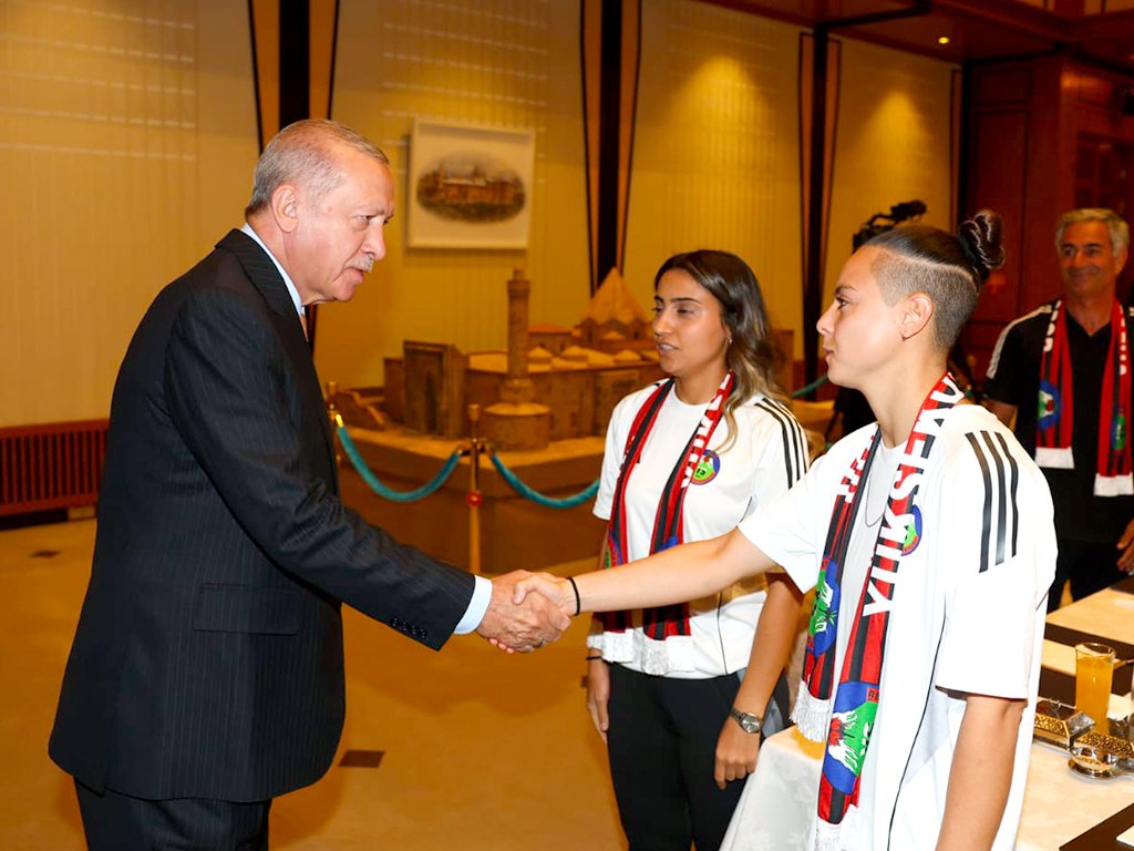 Türkiyə Prezidenti Rəcəb Tayyib Ərdoğan qadınlardan ibarət "Yüksekovaspor" komandasını qəbul edib.