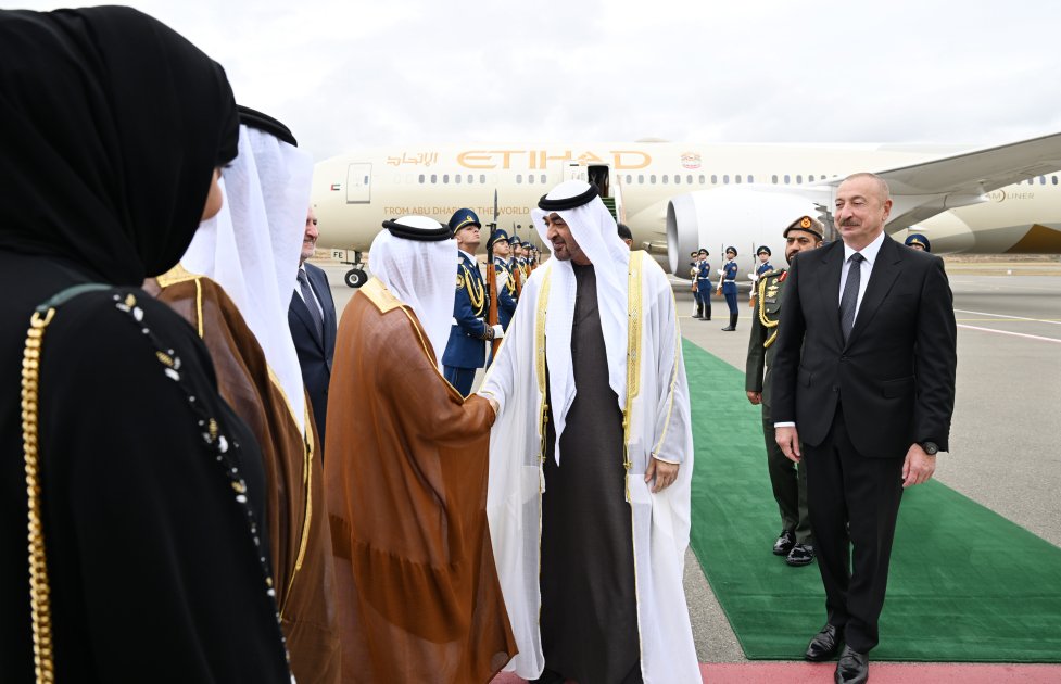 Azərbaycan Respublikası Prezidenti İlham Əliyev Birləşmiş Ərəb Əmirliklərinin Prezidenti Şeyx Məhəmməd bin Zayed Al Nəhyanı qarşıladı.