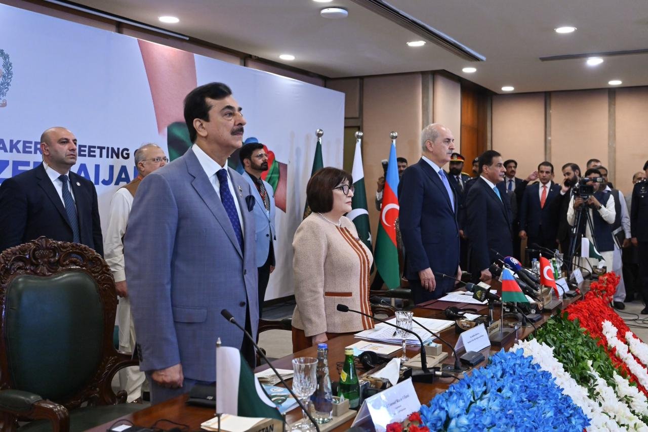 Mərasimdə Pakistan İslam Respublikasının Milli Assambleyasının sədri Sərdar Ayaz Sadiq görüşü açaraq, Azərbaycan və Türkiyə parlament sədrlərini salamlayıb.