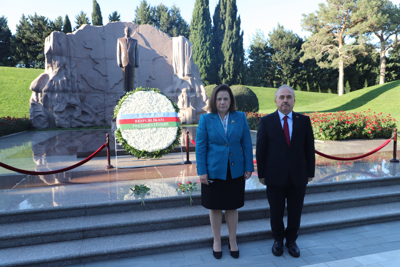 O, həmçinin Fəxri xiyaban, Şəhidlər xiyabanını və Türk şəhidliyini ziyarət edərək. abidələrə və şəhid məzarlarına qərənfillər qoyub.