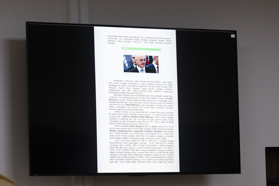Daha sonra Azərbaycan Respublikasının suveren ərazilərinin işğalı, işğal dövründə törədilmiş soyqırımı və əhalinin məhv edilməsi, terror və digər cinayət faktlarını təsdiq edən sənədlər və sübutlar diqqətə çatdırılıb.