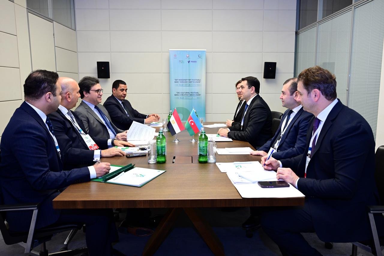 TurkicWorld xəbər verir ki, görüş zamanı nazir Adil Kərimli qonağı Azərbaycanda salamlamaqdan məmnunluğunu ifadə edərək, Misir tərəfinin bu mötəbər beynəlxalq tədbirə göstərdiyi diqqətə görə təşəkkürünü bildirib. Qeyd olunub ki, Azərbaycan və Misir arasında mədəni əməkdaşlıq həm ikitərəfli formatda, həm də beynəlxalq təşkilatlar çərçivəsində uğurla inkişaf edir. Mədəniyyətin müxtəlif sahələri üzrə təcrübə mübadiləsi, birgə layihələrin həyata keçirilməsi və qarşılıqlı iştirak üçün geniş imkanların mövcud olduğu vurğulanıb.