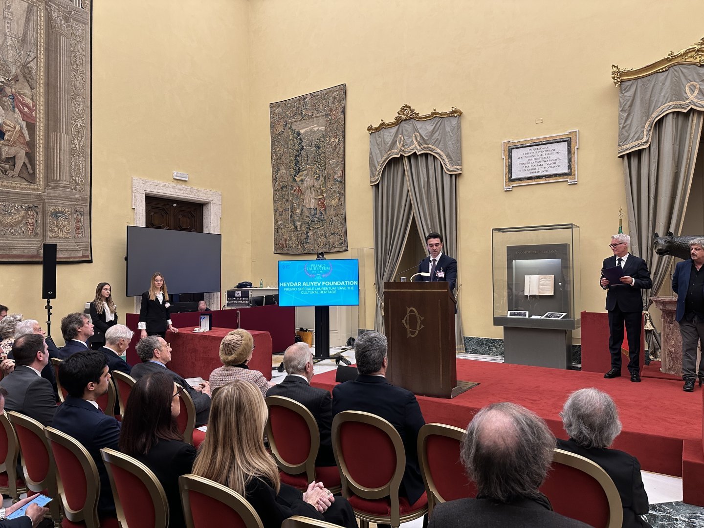 İtaliyanın Deputatlar Palatasının Palazzo Montecitorio binasında keçirilən təltifolunma mərasimində Heydər Əliyev Fondunun mədəni irsin qorunması və mədəniyyətlərarası dialoqun təşviqi sahələrində beynəlxalq miqyasda fəaliyyəti xüsusi vurğulanıb, tolerant dəyərlərə malik olan Azərbaycanın Vatikan dövləti ilə əməkdaşlığı, mədəni irsin qorunması və bərpasına verdiyi töhfələr yüksək qiymətləndirilib. Fondun prezidenti Mehriban Əliyevanın rəhbərliyi ilə Vatikanda Müqəddəs Pyotr Bazilikasında və Vatikan katakombalarında genişmiqyaslı bərpa və konservasiya işlərinin həyata keçirildiyi diqqətə çatdırılıb.