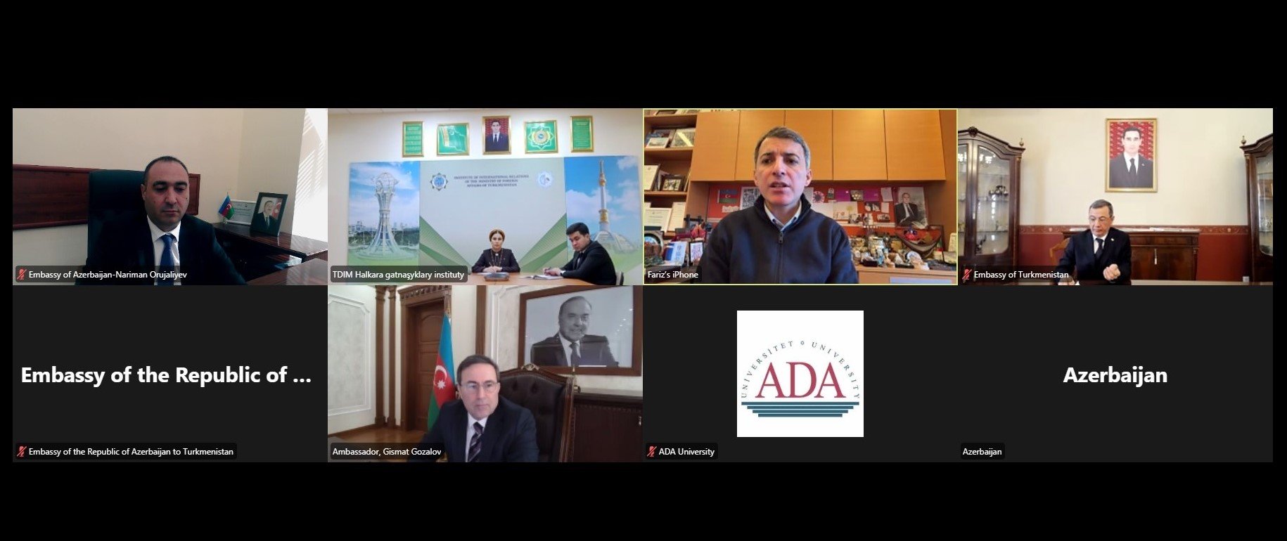 Azərbaycanın ADA Universiteti ilə Türkmənistan Xarici İşlər Nazirliyinin Beynəlxalq Münasibətlər İnstitutu arasında videokonfrans formatında görüş keçirilib.