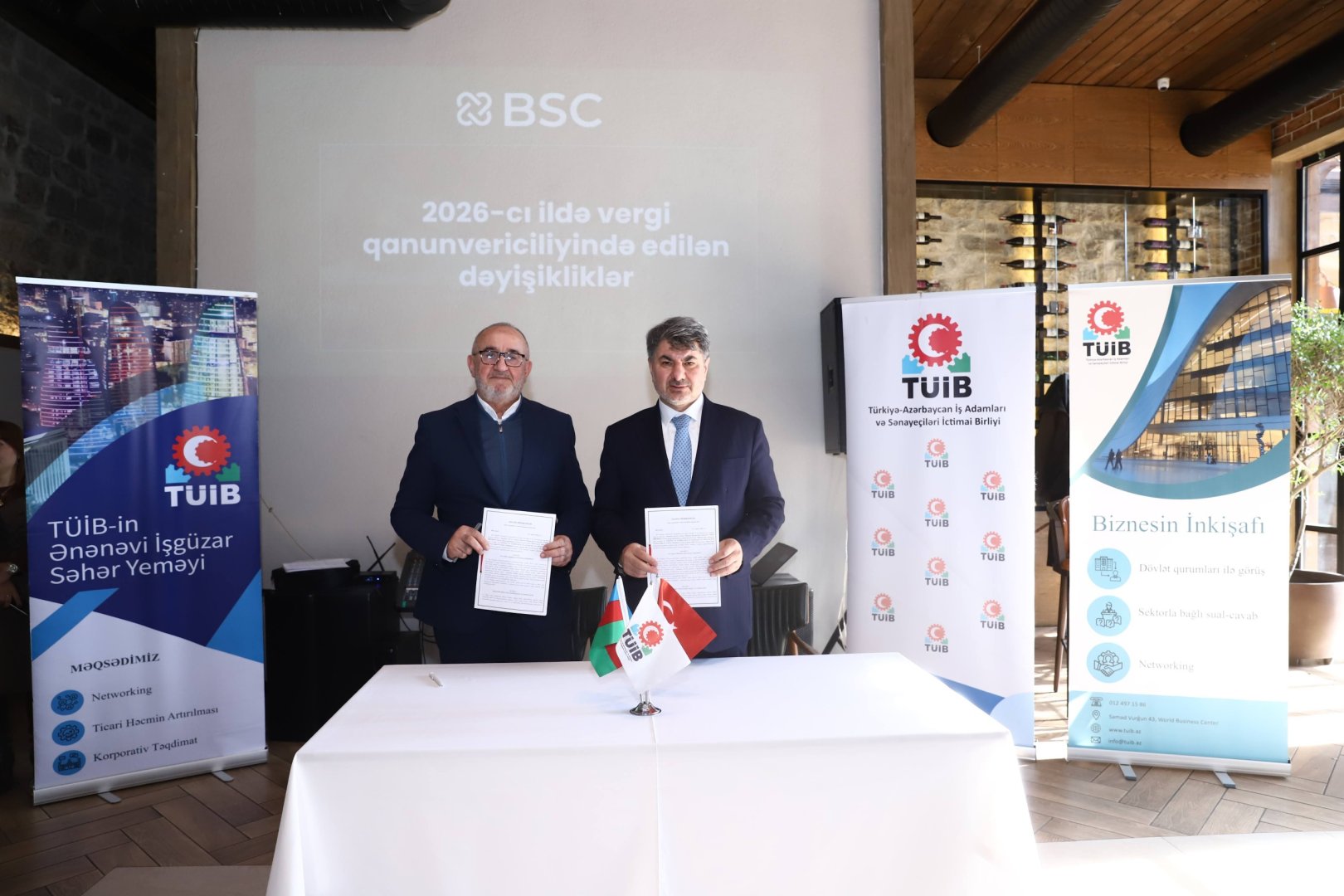 İşgüzar səhər yeməyinin mühüm hissələrindən biri kimi TÜİB ilə onun üzvü olan Business Service Centre (BSC) arasında əməkdaşlıq memorandumu imzalanıb.