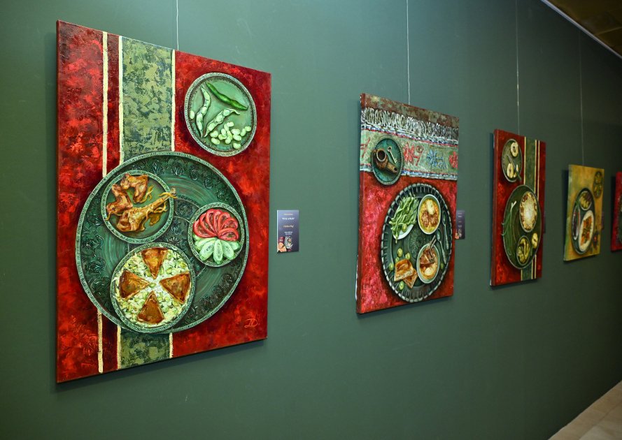 Sərgidə müəllifin 2024–2026-cı illərdə kətan üzərində yağlı boya ilə yaratdığı əsərləri təqdim olunub. Rəssam apardığı araşdırmalar əsasında ərsəyə gətirdiyi əsərlərdə milli mətbəxə, xalq tətbiqi sənətinin zərgərlik, toxuculuq, tikmə, bədii metal, soyuq silah, geyim və digər nümunələrinə müraciət edib. Kompozisiyalarda klassik Azərbaycan rəssamlıq ənənələrinə xas ornamental və bədii elementlərdən, xüsusilə Mirzə Qədim İrəvani üslubunun incəliklərindən məharətlə istifadə olunub.
