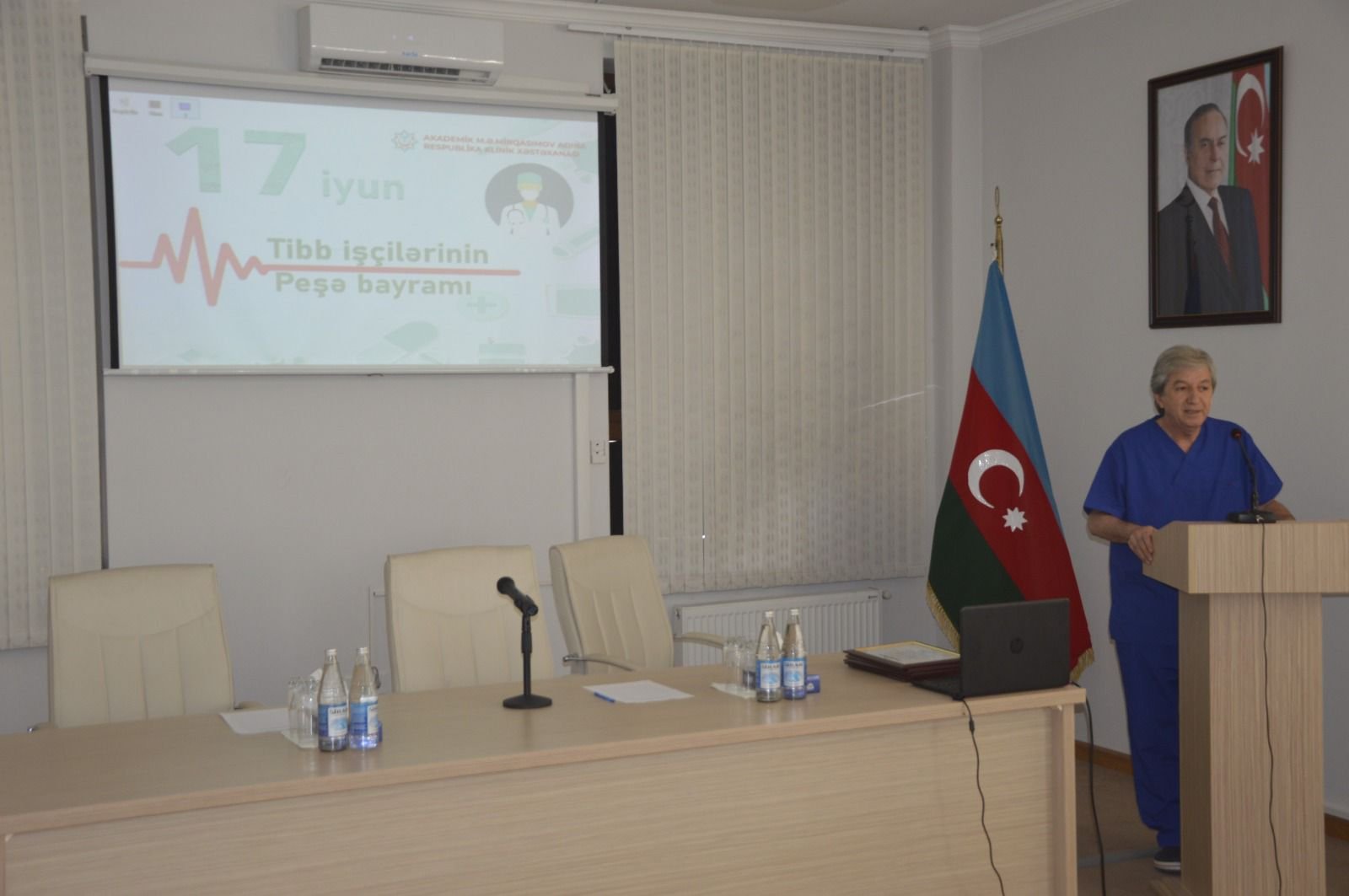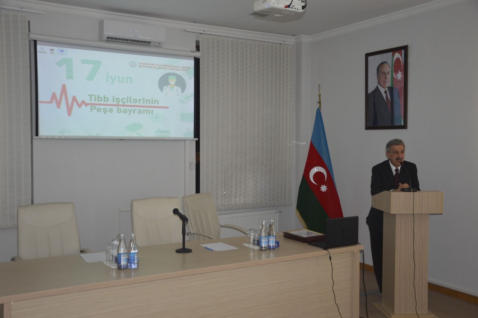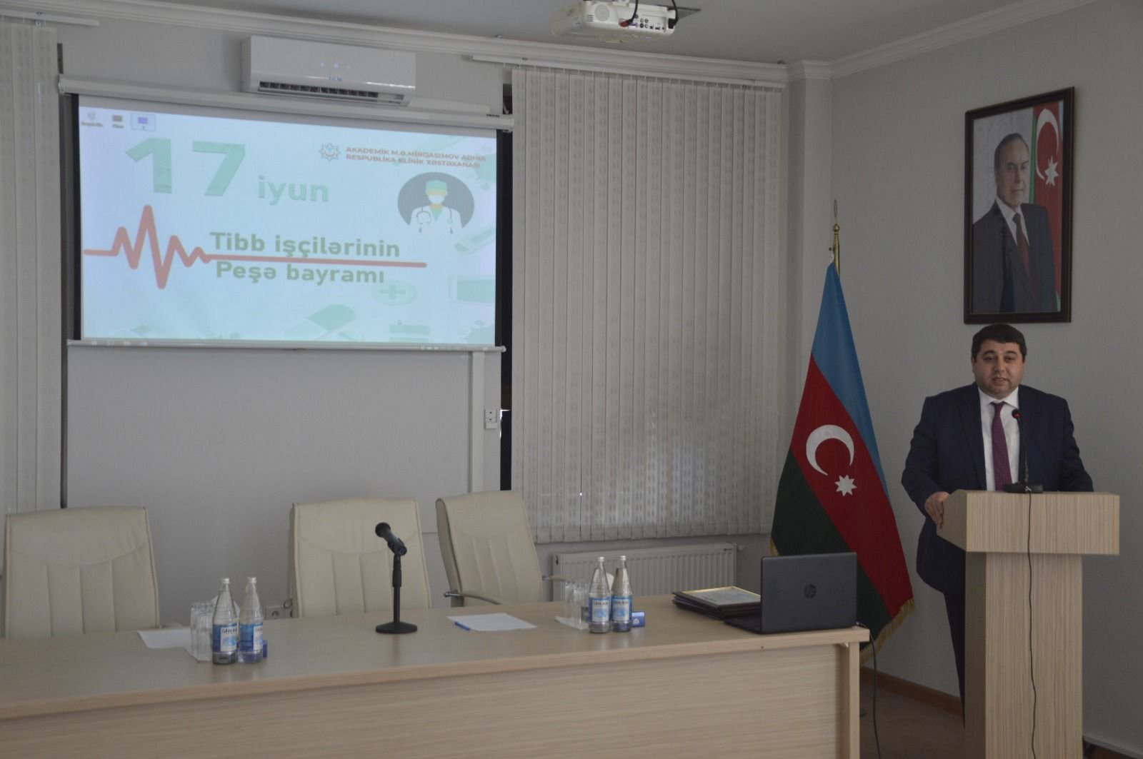 Akademik M.Ə.Mirqasımov adına Respublika Klinik Xəstəxanasının direktoru Elviz Qasımov tədbiri giriş sözü ilə açaraq hər il 17 iyunun Azərbaycanda Tibb İşçilərinin Peşə Bayramı Günü kimi qeyd olunmasının Heydər Əliyevin ölkə səhiyyəsi üçün gördüyü mühüm işlər sırasında xüsusi rol oynadığını diqqətə çatdırıb. Ümummilli Liderin ölkəmizdə səhiyyənin inkişafı sahəsində gördüyü işlərdən danışaraq onu müstəqil Azərbaycan dövlətinin və səhiyyəsinin memarı adlandırıb: