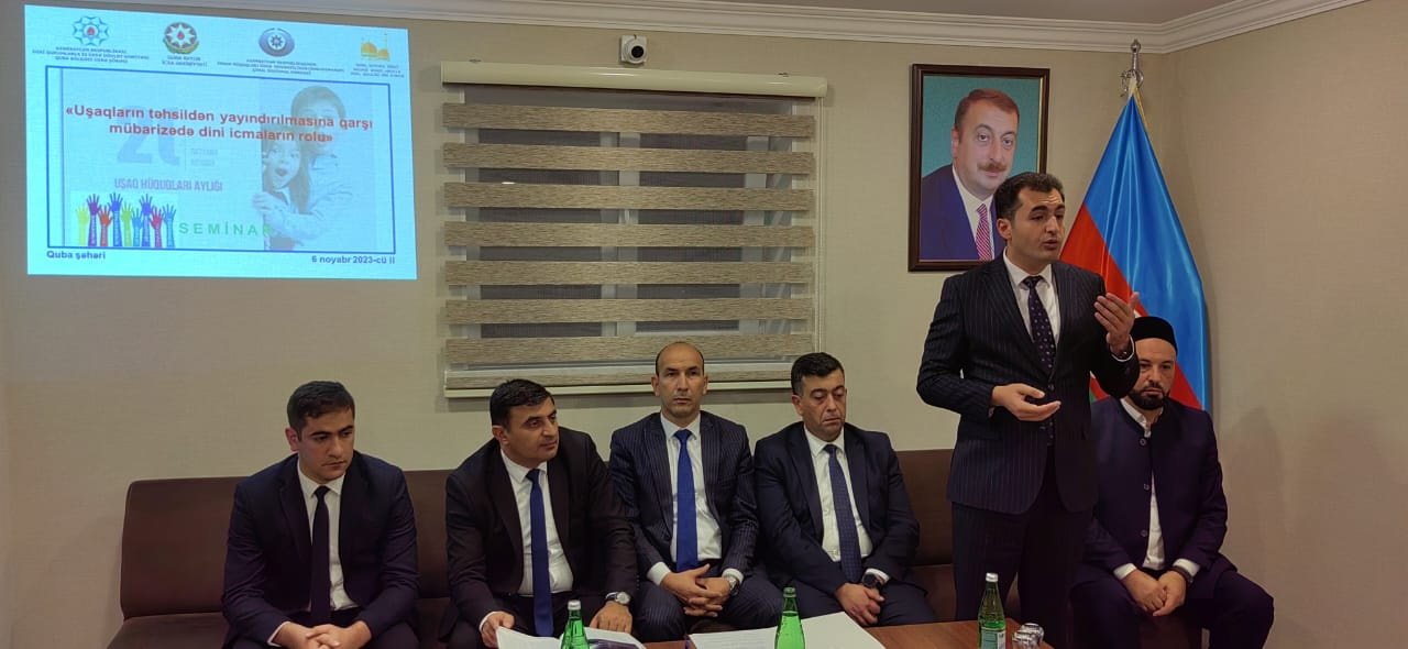 Çıxışlar zamanı məlumat verilib ki, uşaq hüquqlarının beynəlxalq müdafiəsi istiqamətində mühüm aspektləri özündə birləşdirən, 1989-cu il noyabrın 20-də BMT-nin Baş Məclisi tərəfindən qəbul edilmiş “Uşaq hüquqları haqqında” Konvensiya iştirakçı dövlətlərin hər bir uşaq üçün təmin etməli olduğu universal standartları müəyyən edir. Konvensiya dünyada ən geniş şəkildə ratifikasiya olunan beynəlxalq müqavilə olmaqla uşaqların hüquqlarını qorumaq üçün qəbul edilən əsas sənəd kimi bir çox dövlətlərin bu sahədə milli qanunvericilik bazasının formalaşmasına təkan vermişdir. Qeyd olunub ki, Azərbaycan Respublikası 1992-ci ildə BMT-nin “Uşaq hüquqları haqqında” Konvensiyasına, 2002-ci ildə isə həmin Konvensiyanın iki əlavə protokoluna qoşulmuş, 1998-ci il 19 may tarixində ölkəmizdə sözügedən Konvensiyanın əsas prinsiplərini özündə əks etdirən “Uşaq hüquqları haqqında” Azərbaycan Respublikasının Qanunu qəbul edilmiş və ölkədə uşaq hüquqlarının müdafiəsi məqsədilə müxtəlif istiqamətlərdə davamlı olaraq zəruri tədbirlər həyata keçirilməsi təmin olunmuşdur. Seminarda bildirilmişdir ki, təhsil uşaqların gələcək həyatının qurulmasında mühüm rol oynayır və Azərbaycan Respublikasının ən ucqar kəndlərində belə yeni, müasir standartlara cavab verən məktəblər istifadəyə verilmişdir, hazırda da, bu iş, o cümlədən məktəblərin təchizatı davam etdirilir. Qeyd olunmuşdur ki, dini icmalar da, uşaqların dünyəvi təhsildən yayınmaması üçün özlərinə aid məsələlərdə məsuliyyət daşıyır.
